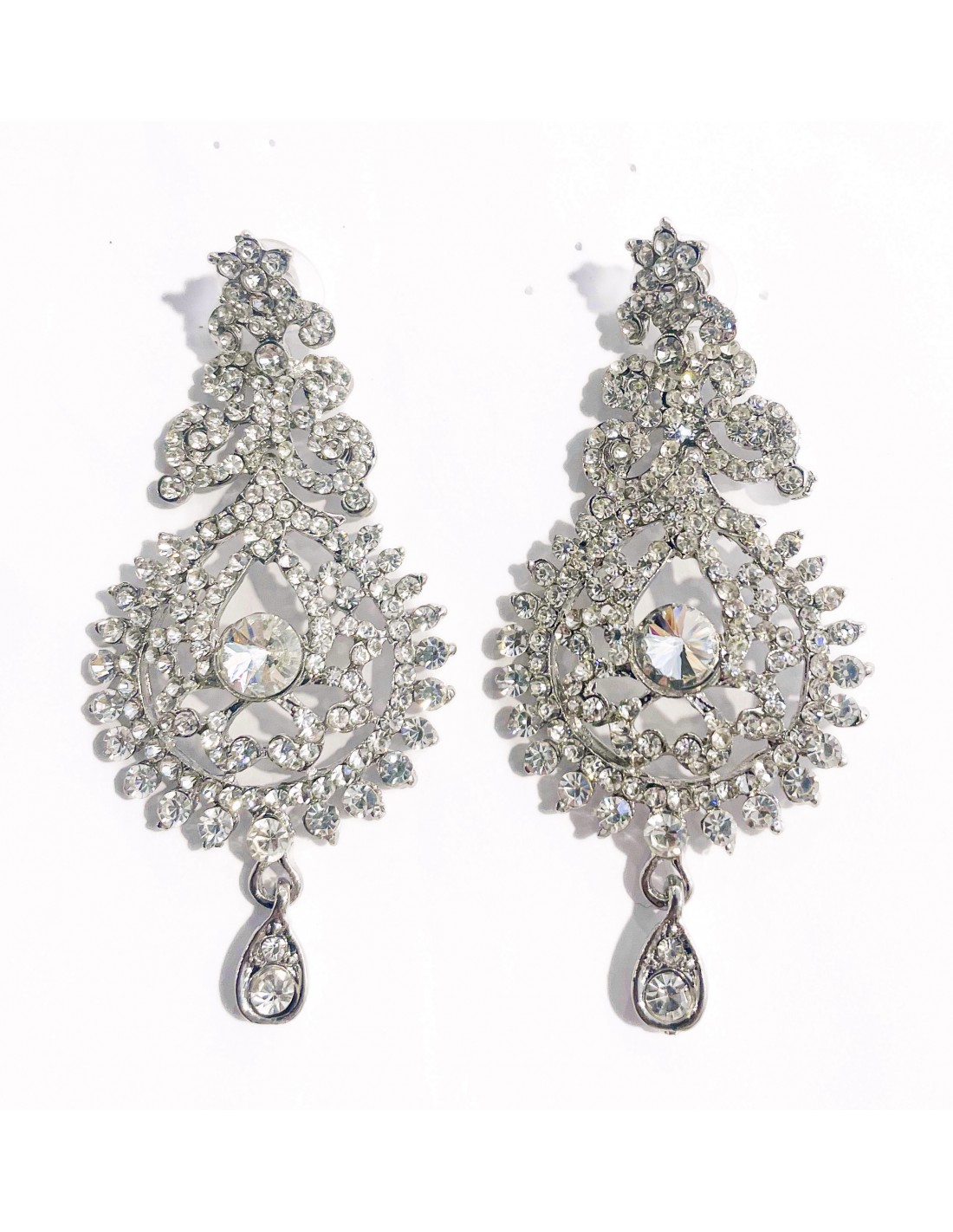 Boucles d’oreilles argente serties de strass – Élégance orientale indienne
