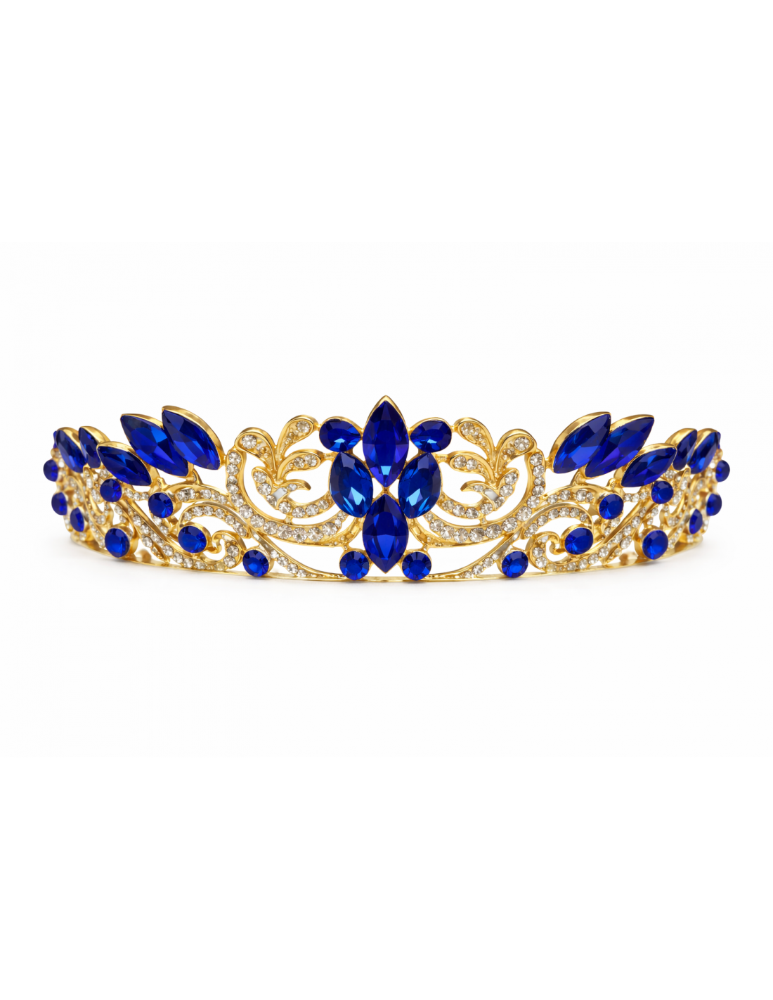Diadème avec strass – Élégance discrète pour mariages et cérémonies - doré bleu