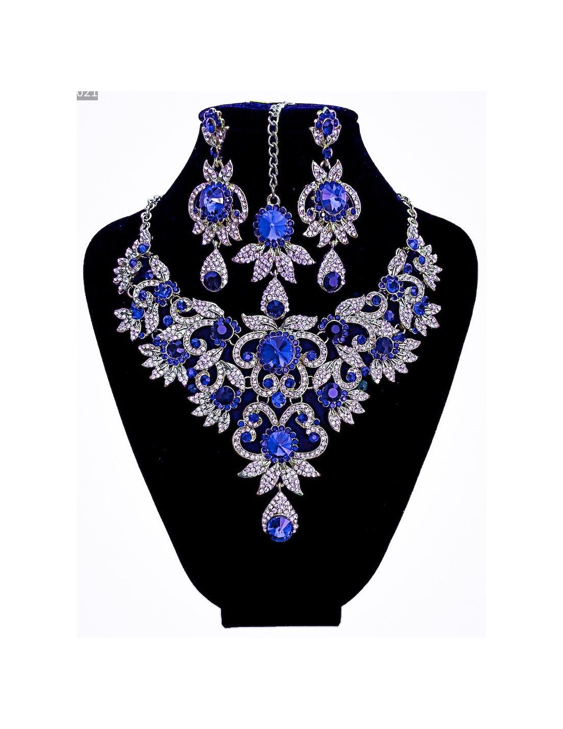 Bijoux indienne Bollywood idéale pour un sari, salwar kameez Argenté Bleu royale