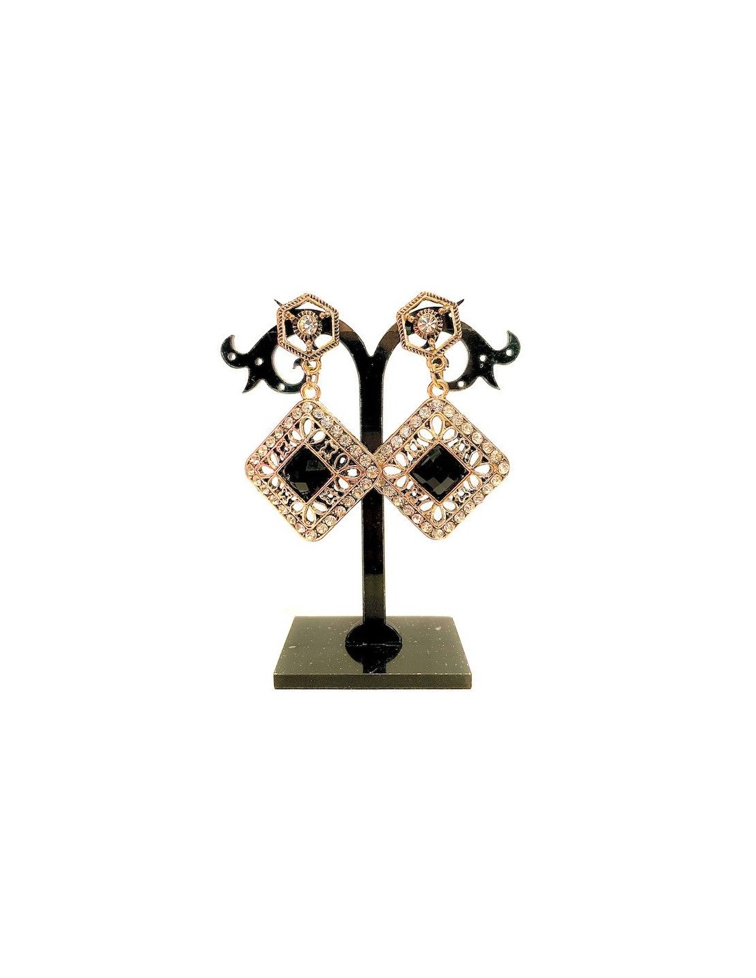Paires de Boucles d'oreilles forme carré, de couleur noir et dorés, idéale pour être assortie avec vos tenues bollywood ou orientales