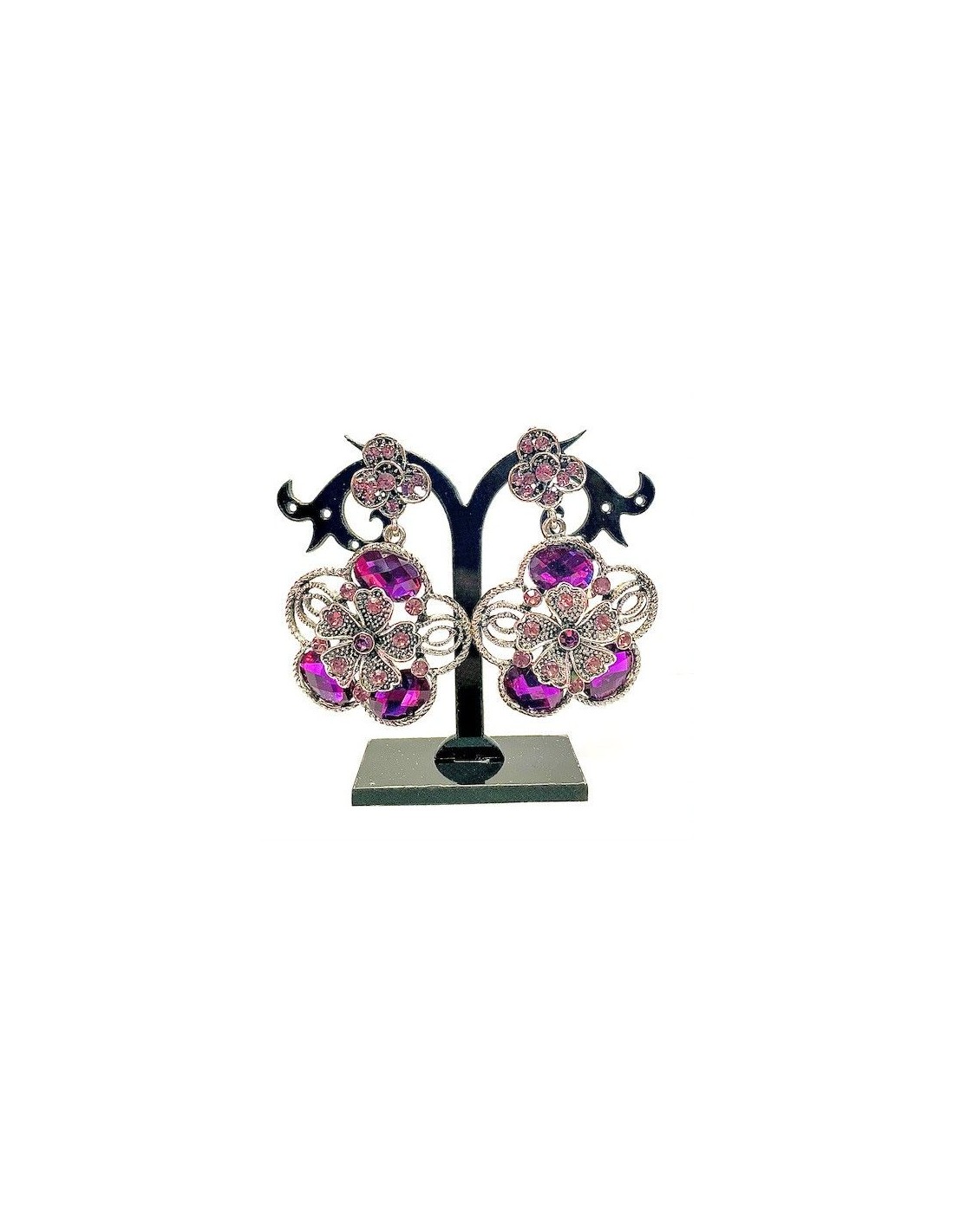 Boucles d'oreilles fantaisie en forme de fleur, couleur argenté et violet