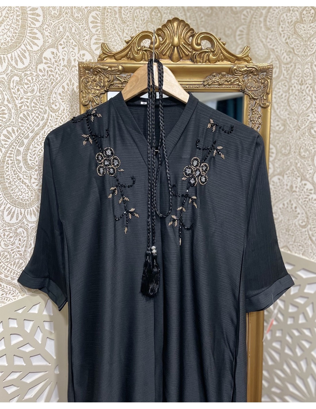 tenue enfant style Abaya oriental, perlée de strass et perles sur le buste