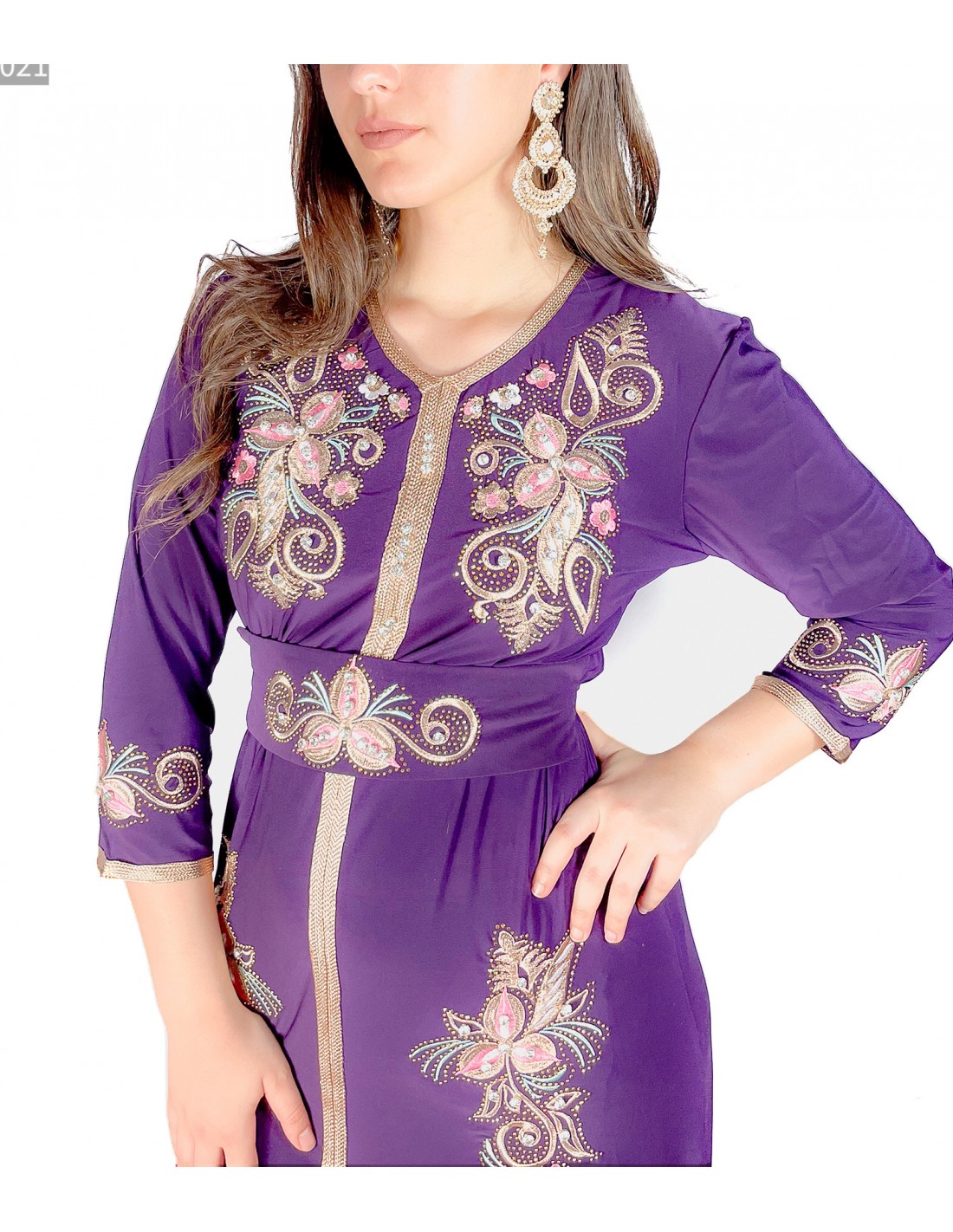 le pantalon avec élastique à la taille, brodé de motif et strass sur le bas