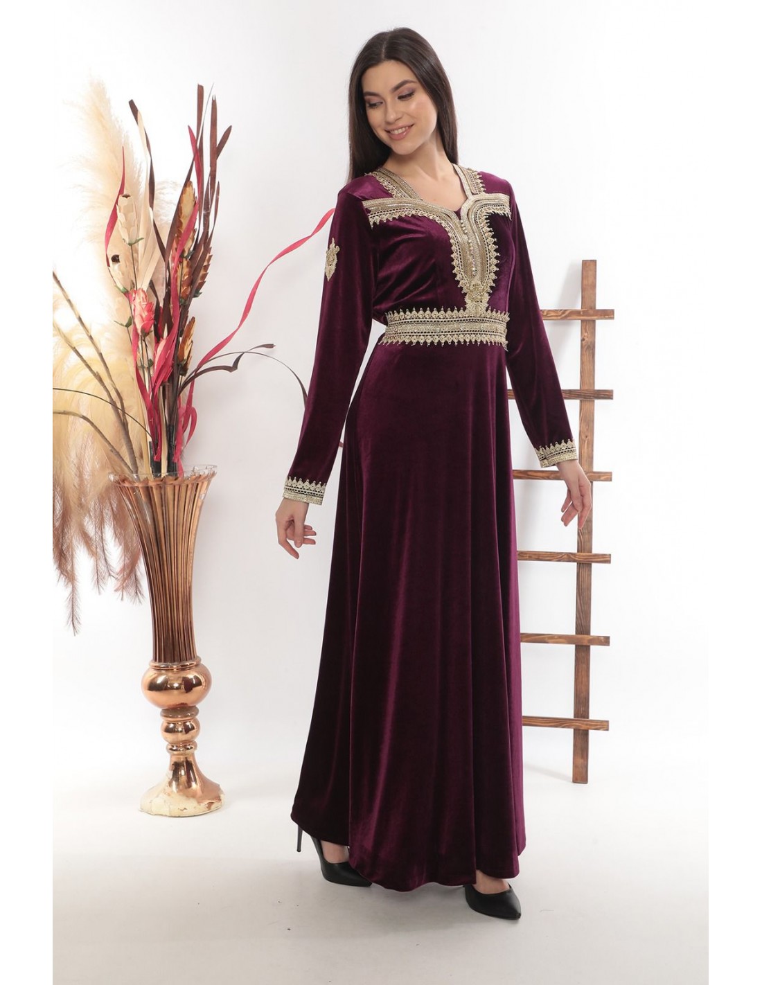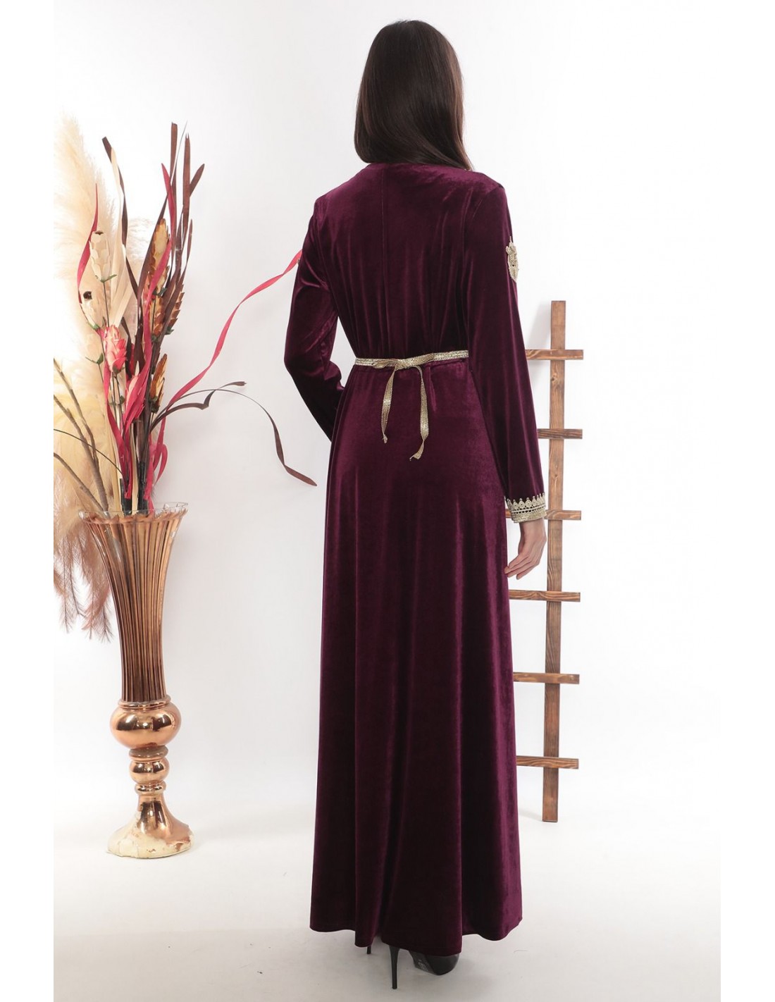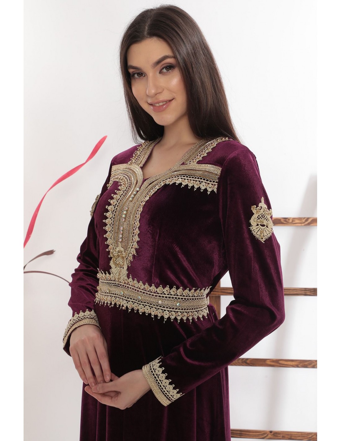 robe oriental en velours brodé en doré et sublimé de petites perles.