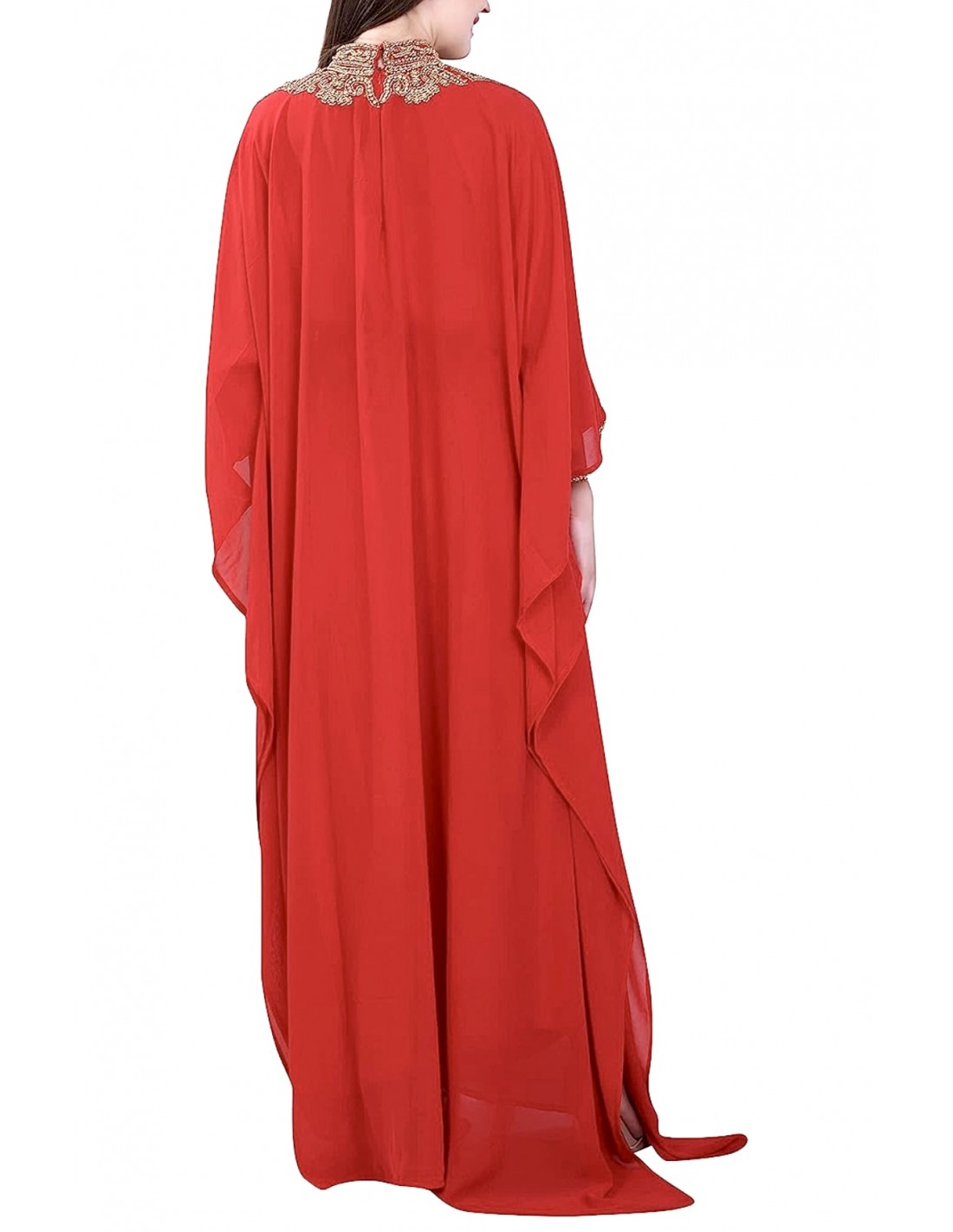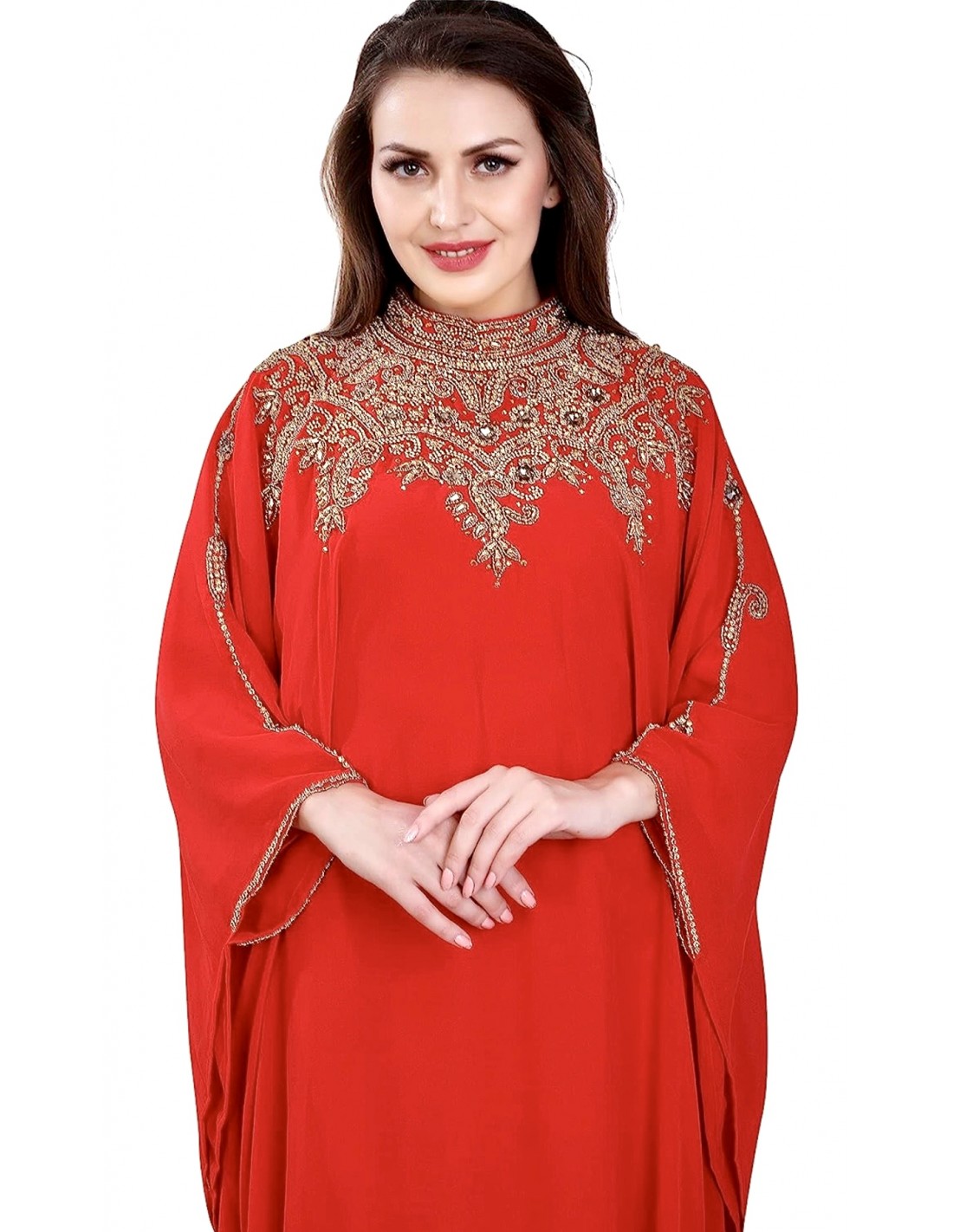 robe dubai papillon rouge et dorée, finement cousu de perles et sequins or, très élégante et raffinée, vous sublimera telle une reine d'orient!