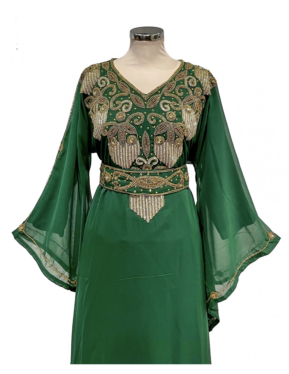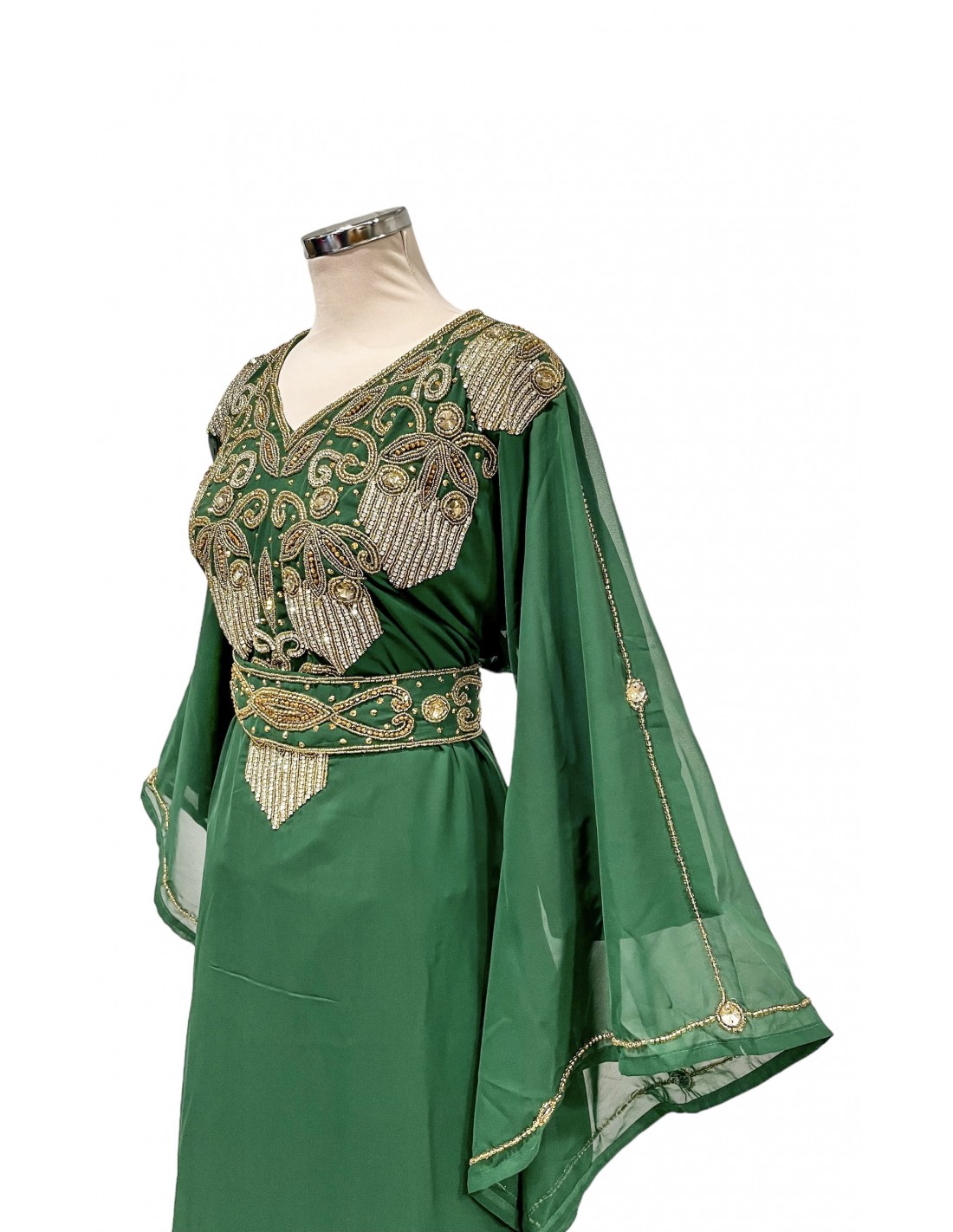 Robe de Dubai farasha oriental manches évasée Vert dore