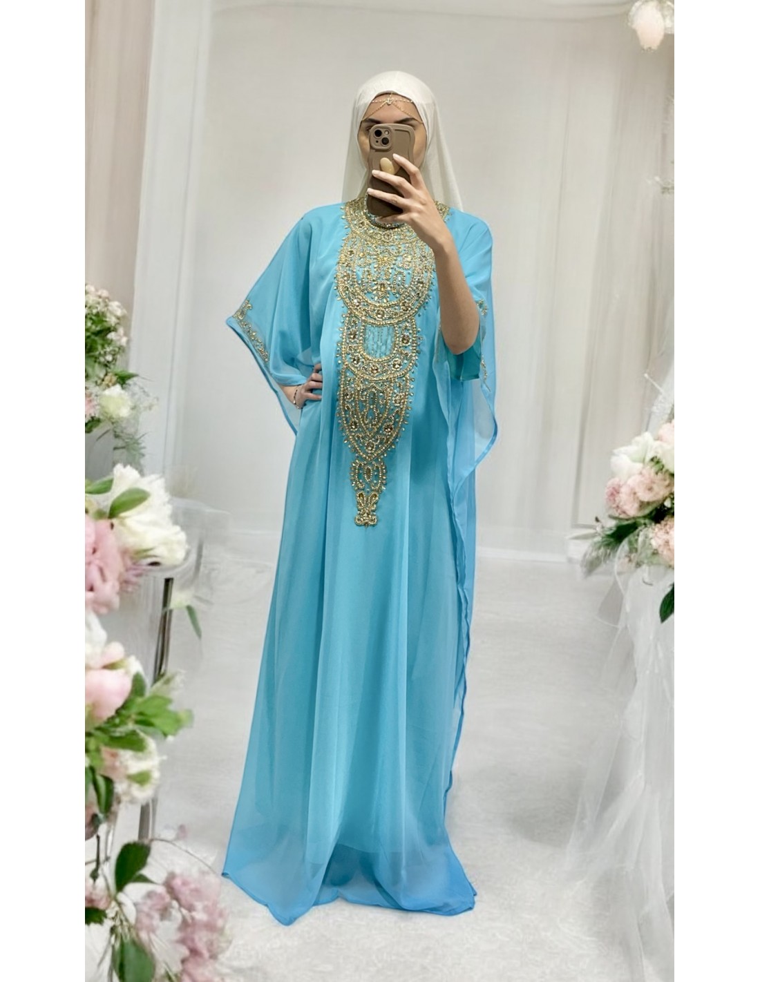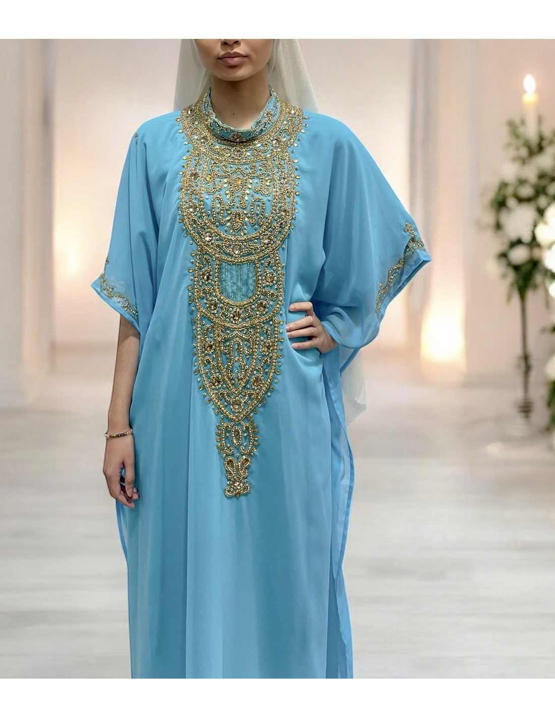 - Abaya kaftan bleu ciel
