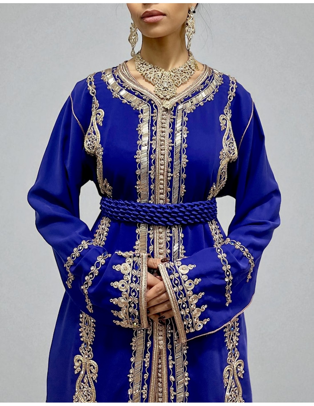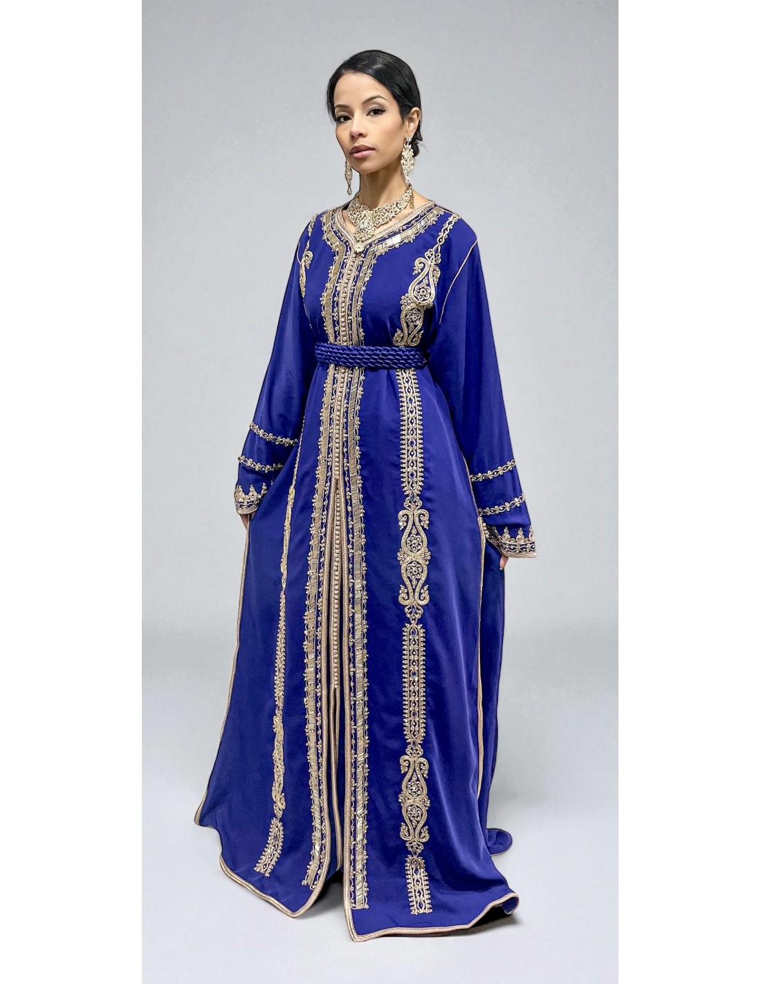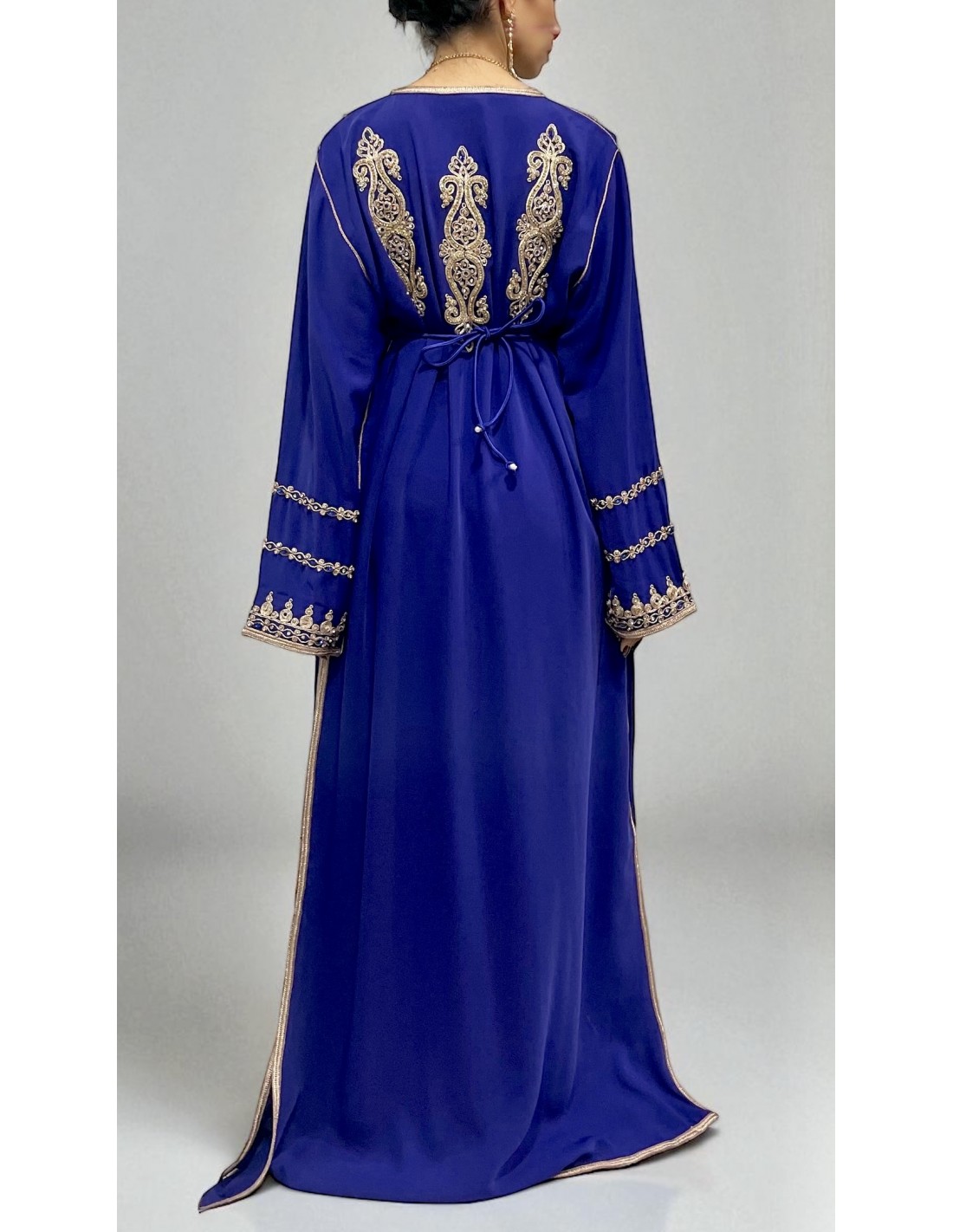 Caftan bleu royal brodé or – Robe traditionnelle orientale élégante