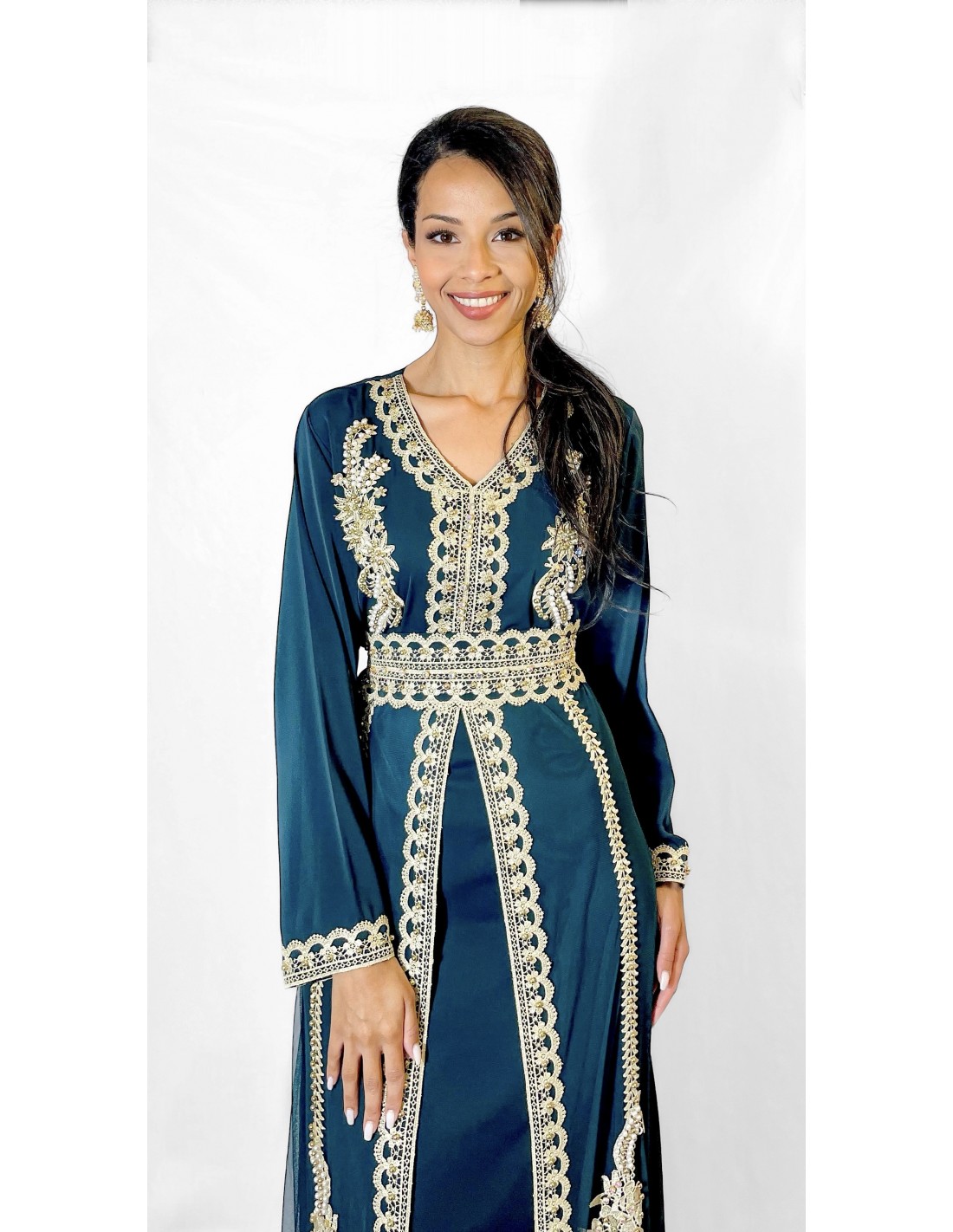 Caftan pas cher, caftan Dubaï, robe orientale femme, takchita moderne, robe EID 2025, caftan mariage, robe soirée orientale, robe orientale pas chère, robe longue orientale, mode orientale Lille, Miss Indya, caftan brodé doré