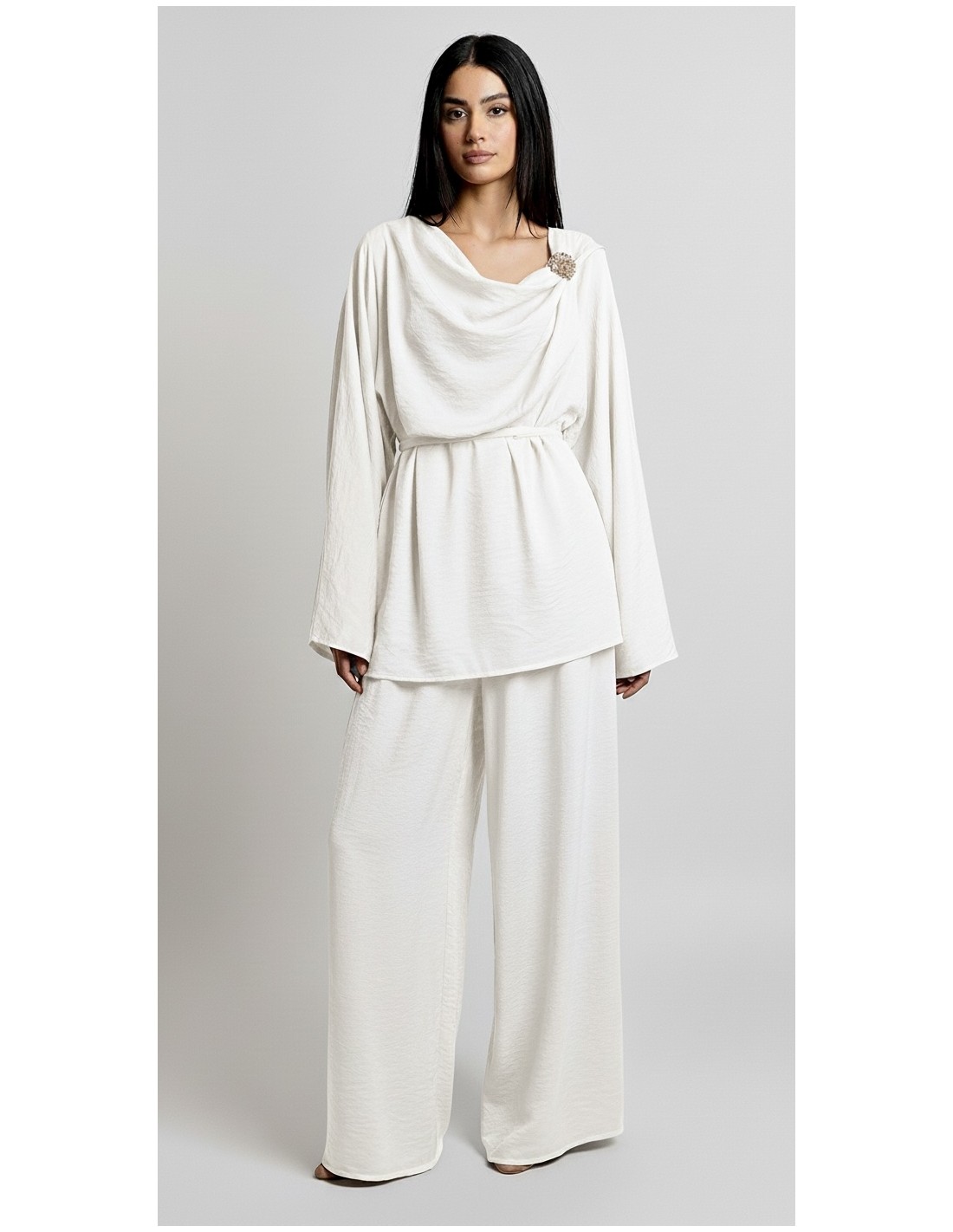 Ensemble drapé sari mastour blanc