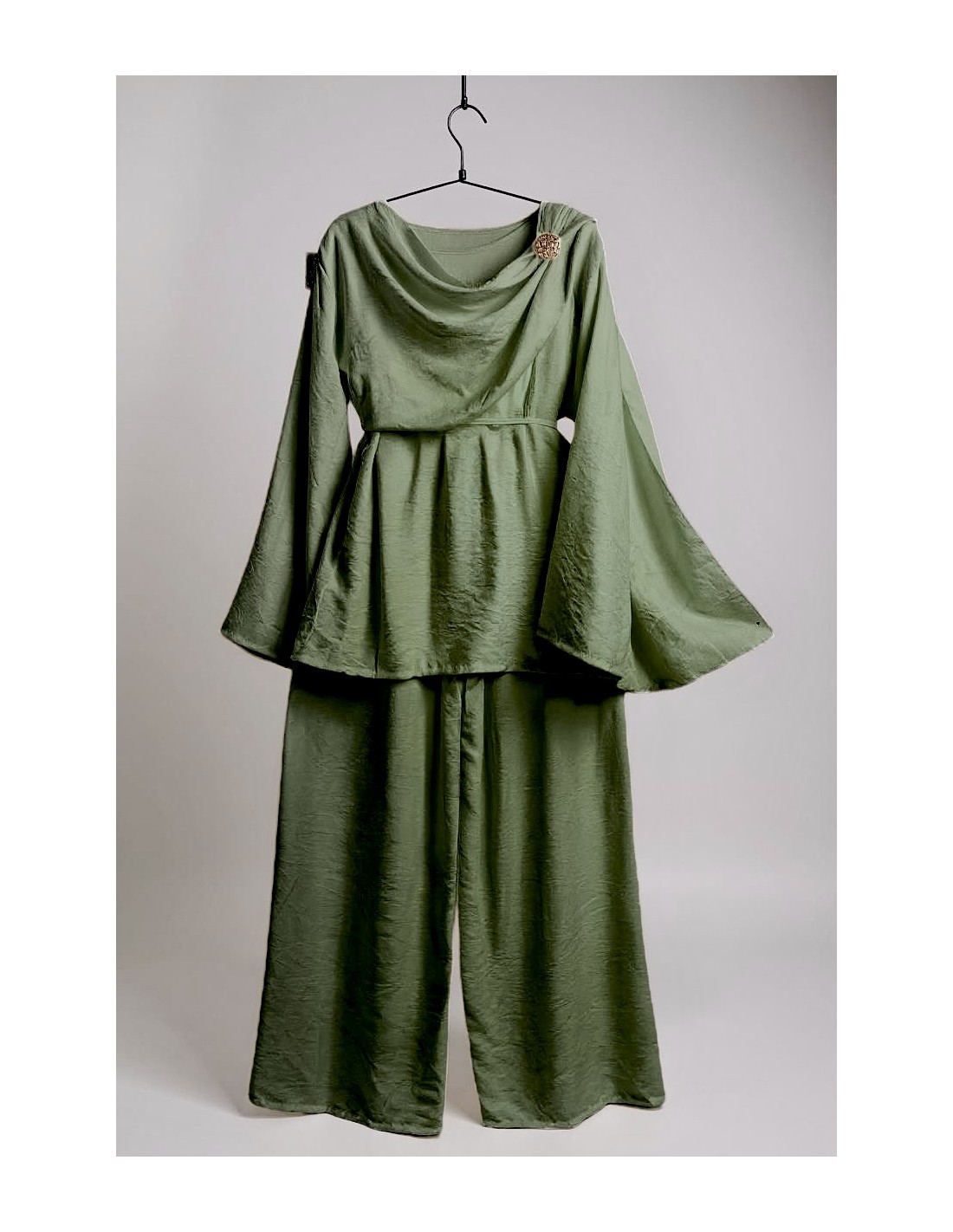 Ensemble drapé sari mastour vert olive