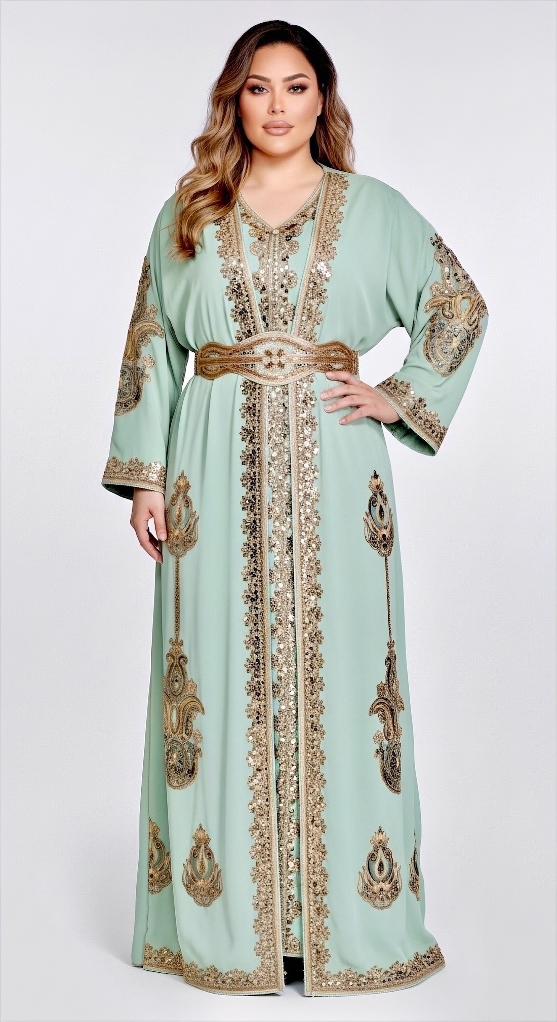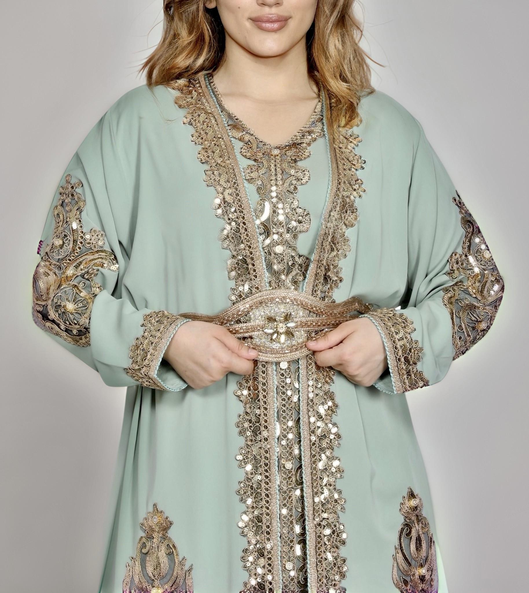 Caftan Grande Taille Femme – Modèle Takchita 2 pieces - Petit Prix Vert d eau