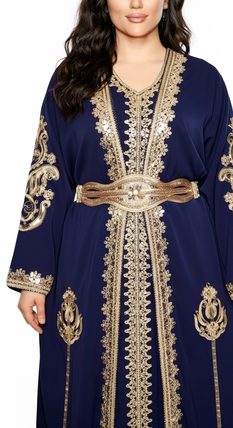 Caftan Grande Taille Femme – Modèle Takchita 2 pieces - Petit Prix bleu marine