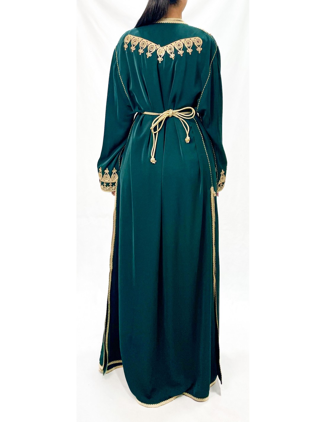 Caftan Marocain Luxe vert 2 Pièces – Broderies Dorées & Ceinture Incluse  - 3
