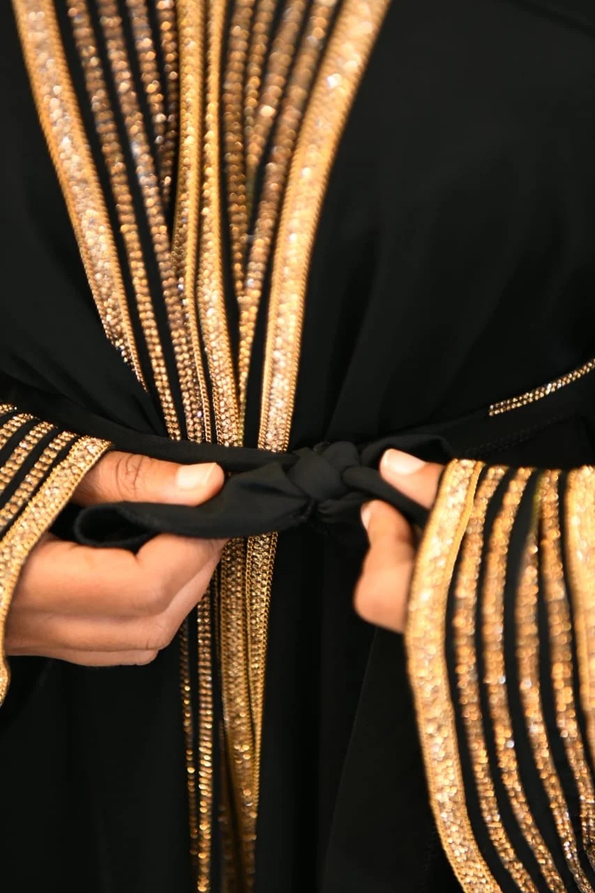 Abaya noire brodée or – Robe Dubaï élégante et moderne