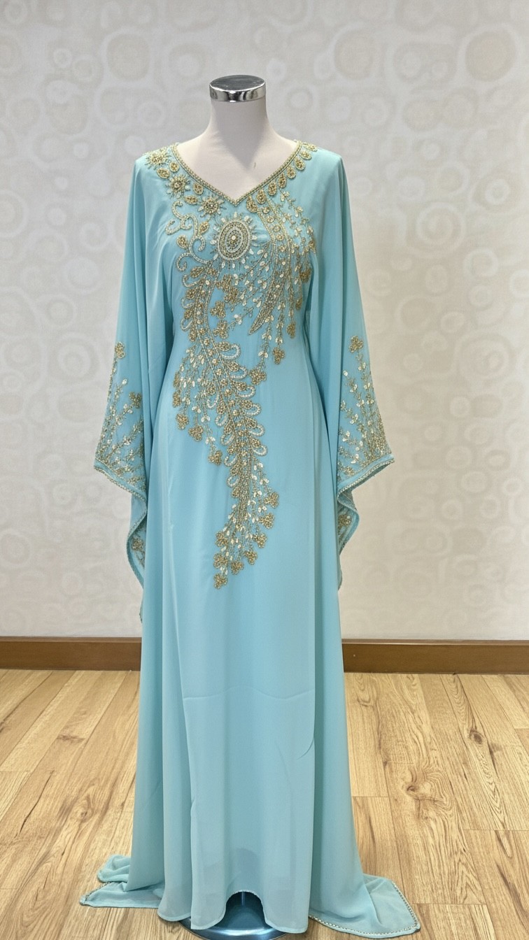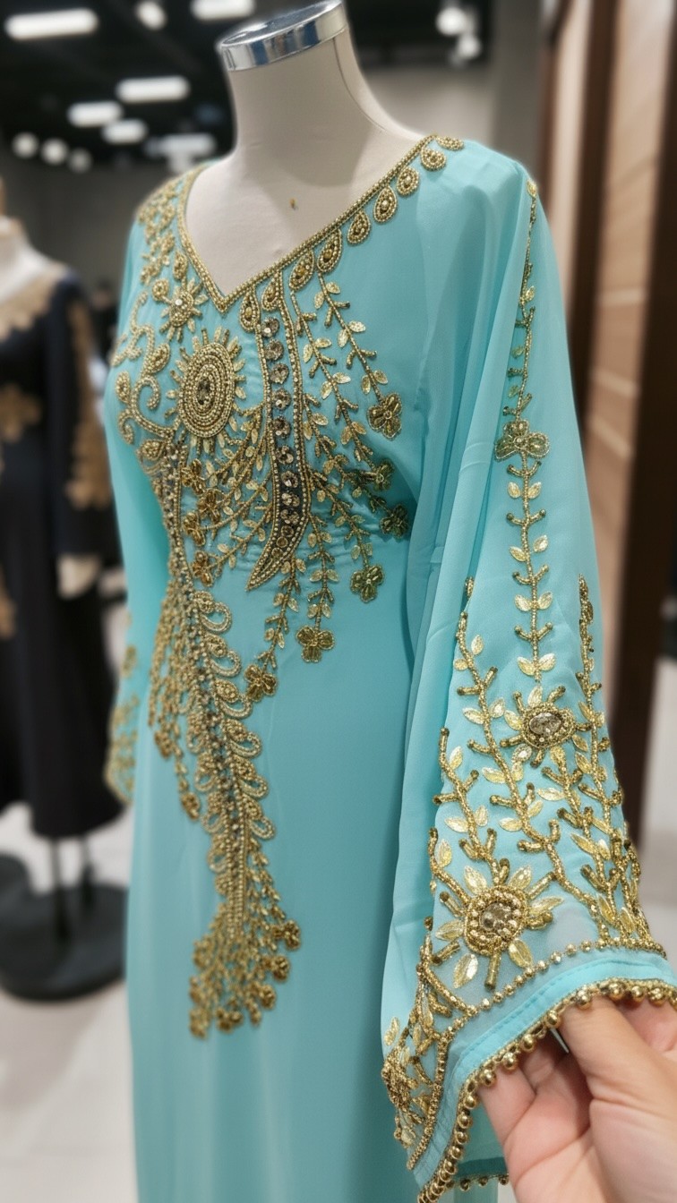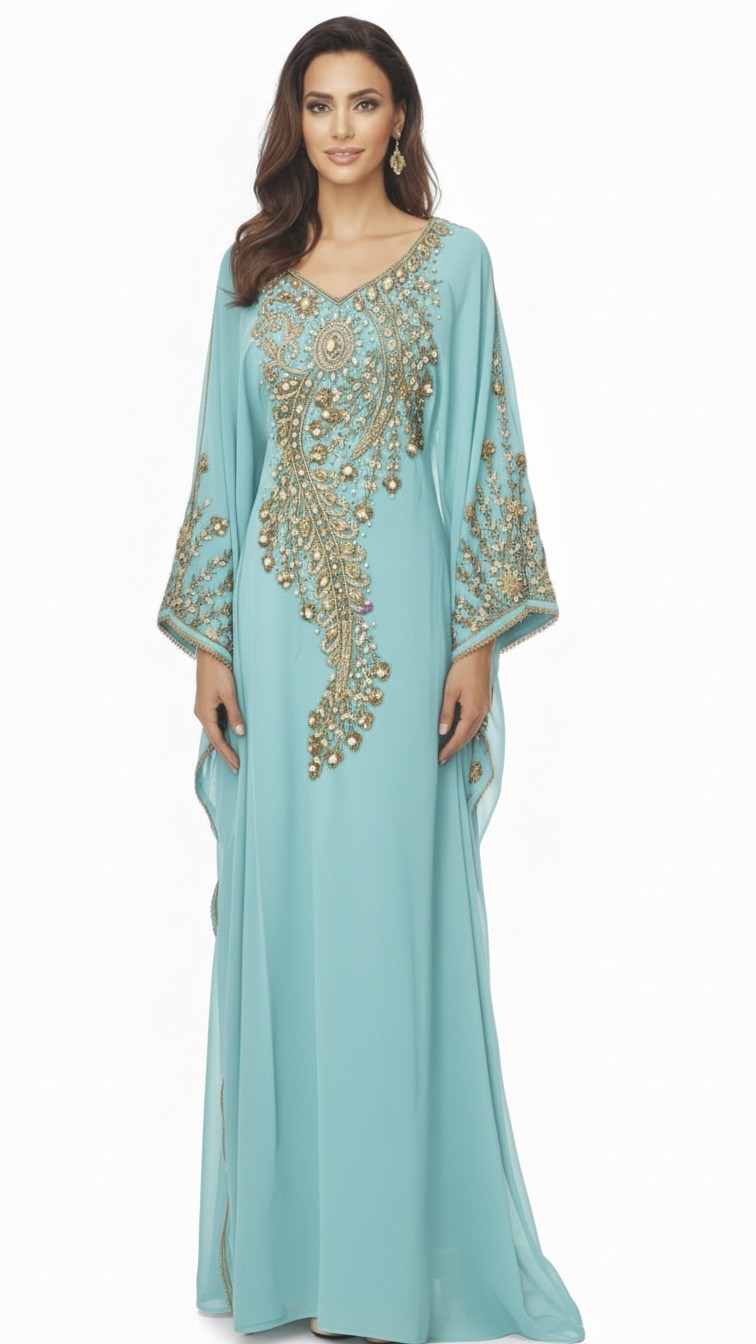 Laissez-vous séduire par ce somptueux takchita en dentelle brodée en deux pièces, pour briller lors de vos plus belles occasions. Raffiné, confortable et ultra féminin, il est conçu pour sublimer toutes les morphologies. taille unique 38 au 44