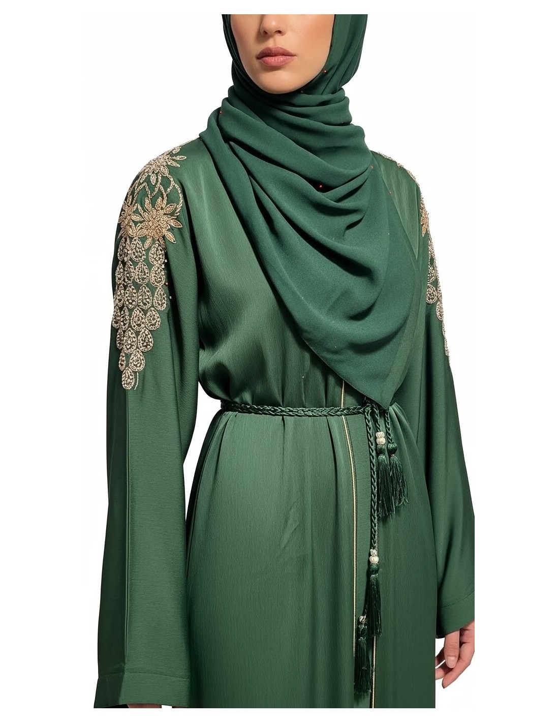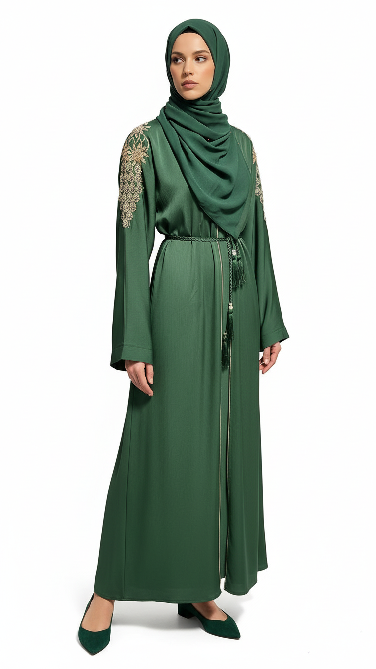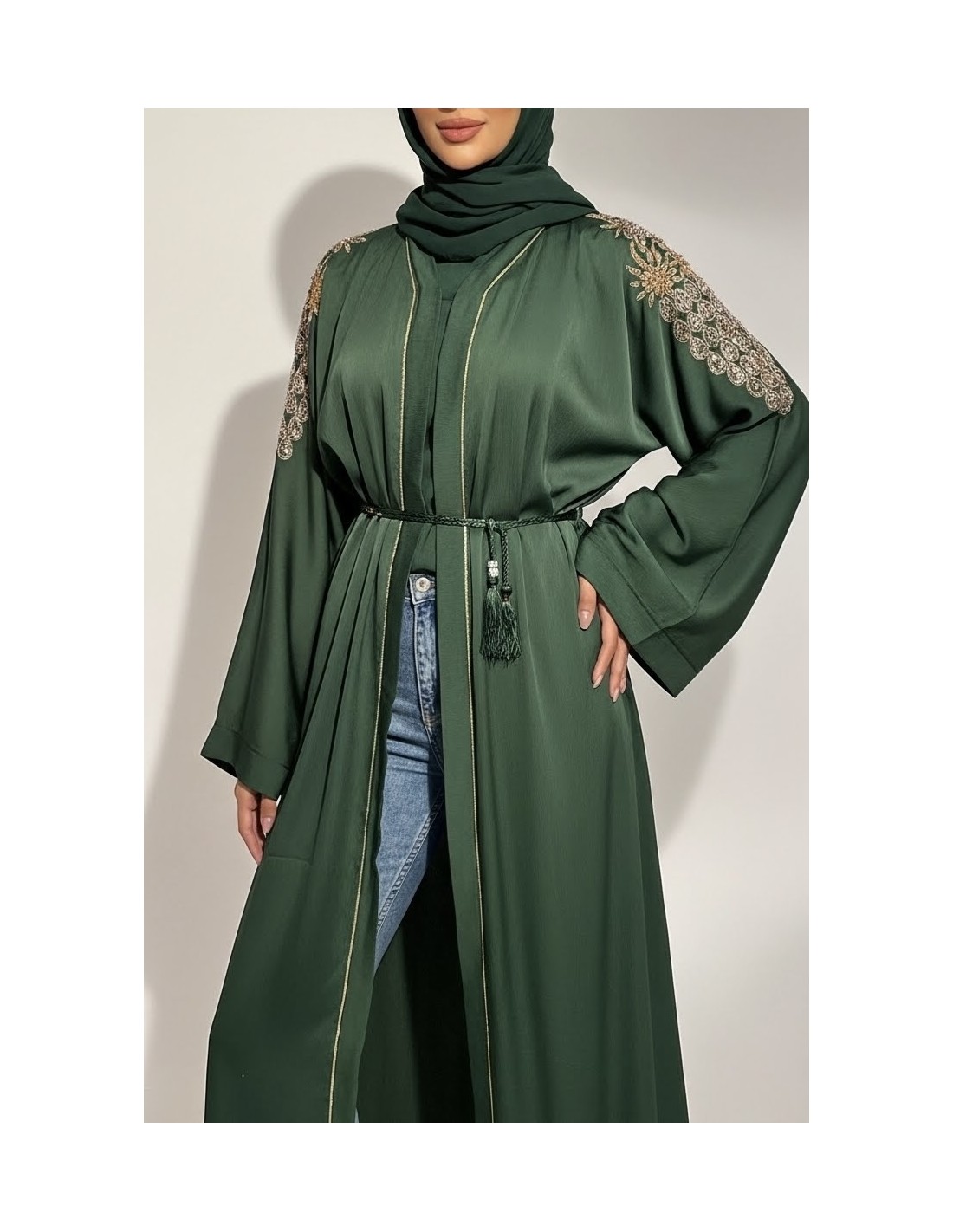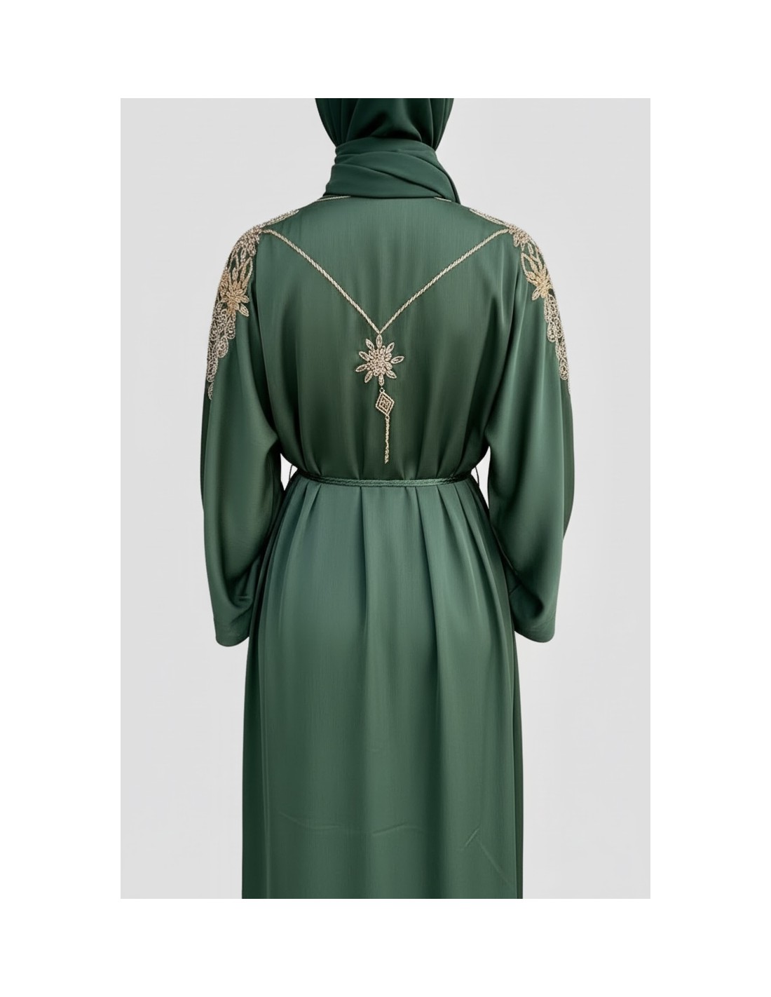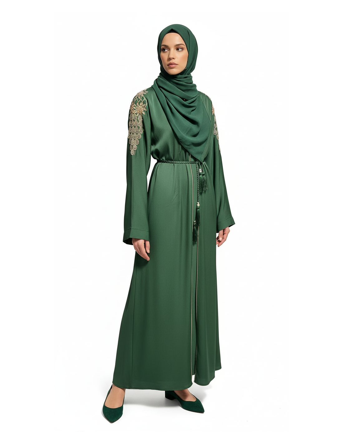 Abaya élégante brodée avec ceinture – Chic oriental Vert