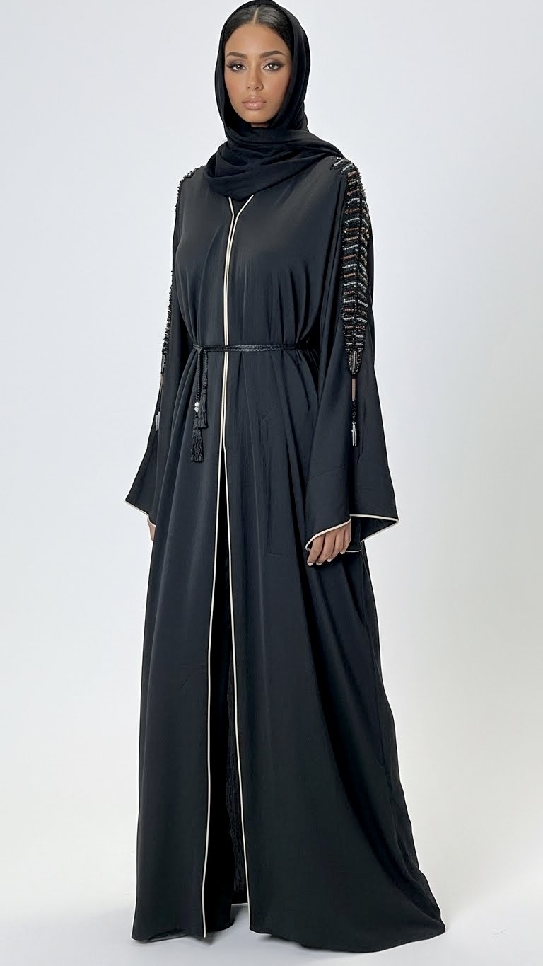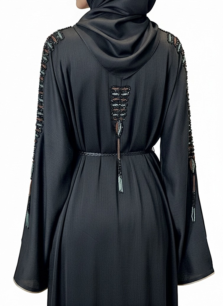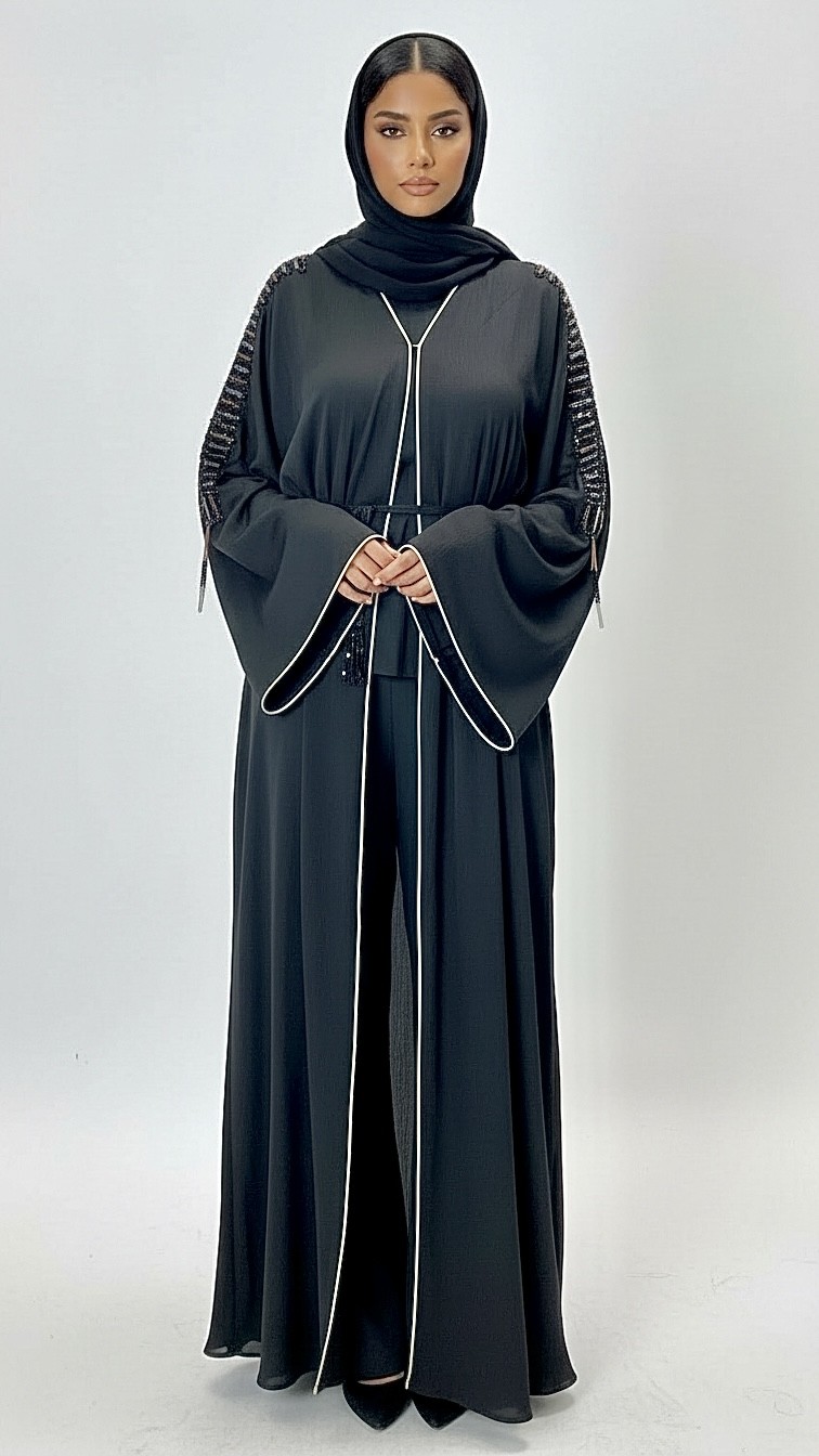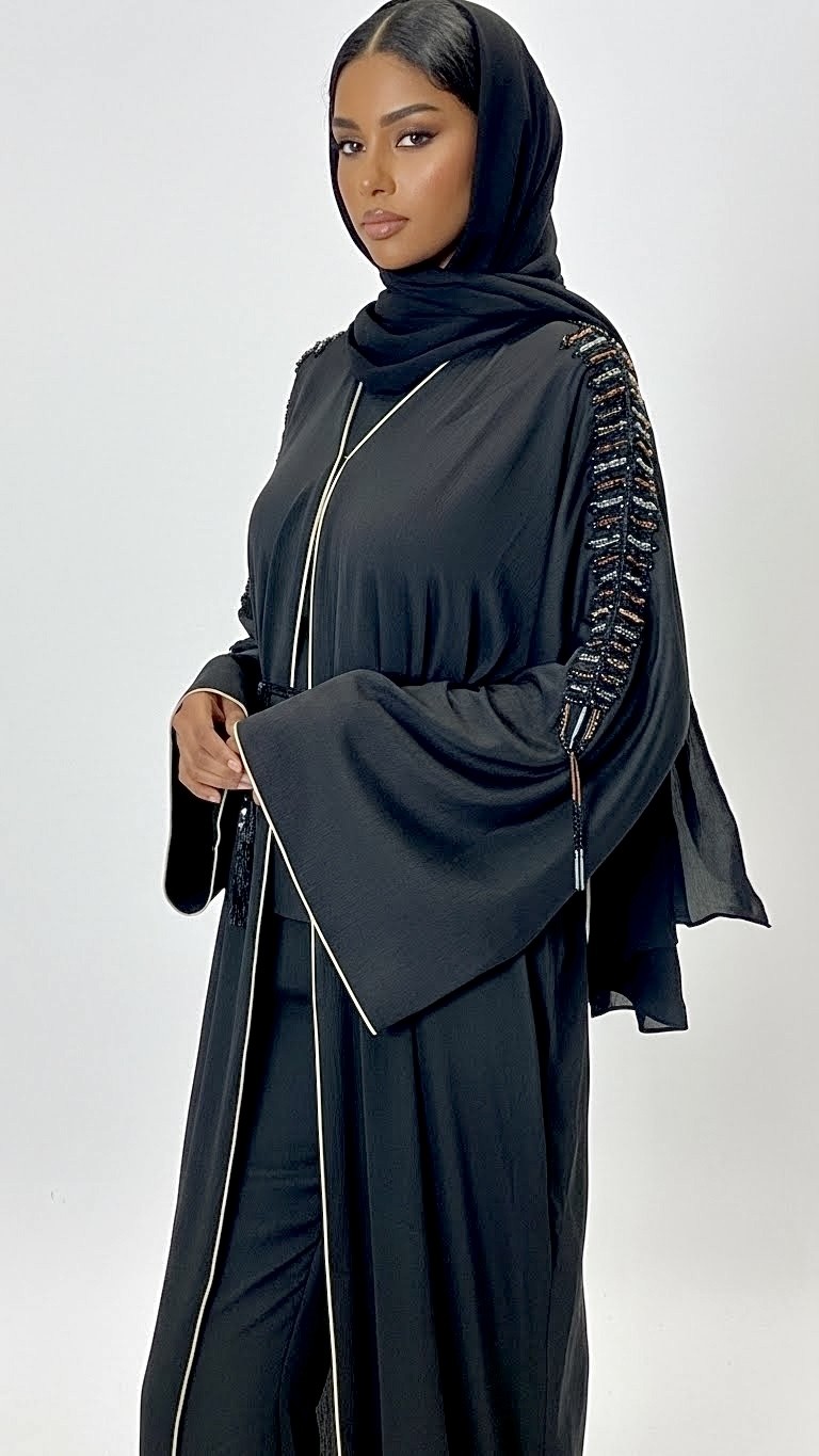 Cette abaya kimono Dubai noir intense incarne un style mastour chic et sophistiqué, pensé pour les femmes recherchant une tenue élégante, fluide et intemporelle. Sa teinte noire profonde, symbole de raffinement, est sublimée par de broderies délicates et perlées le long des manches, apportant une touche couture discrète et luxueuse.