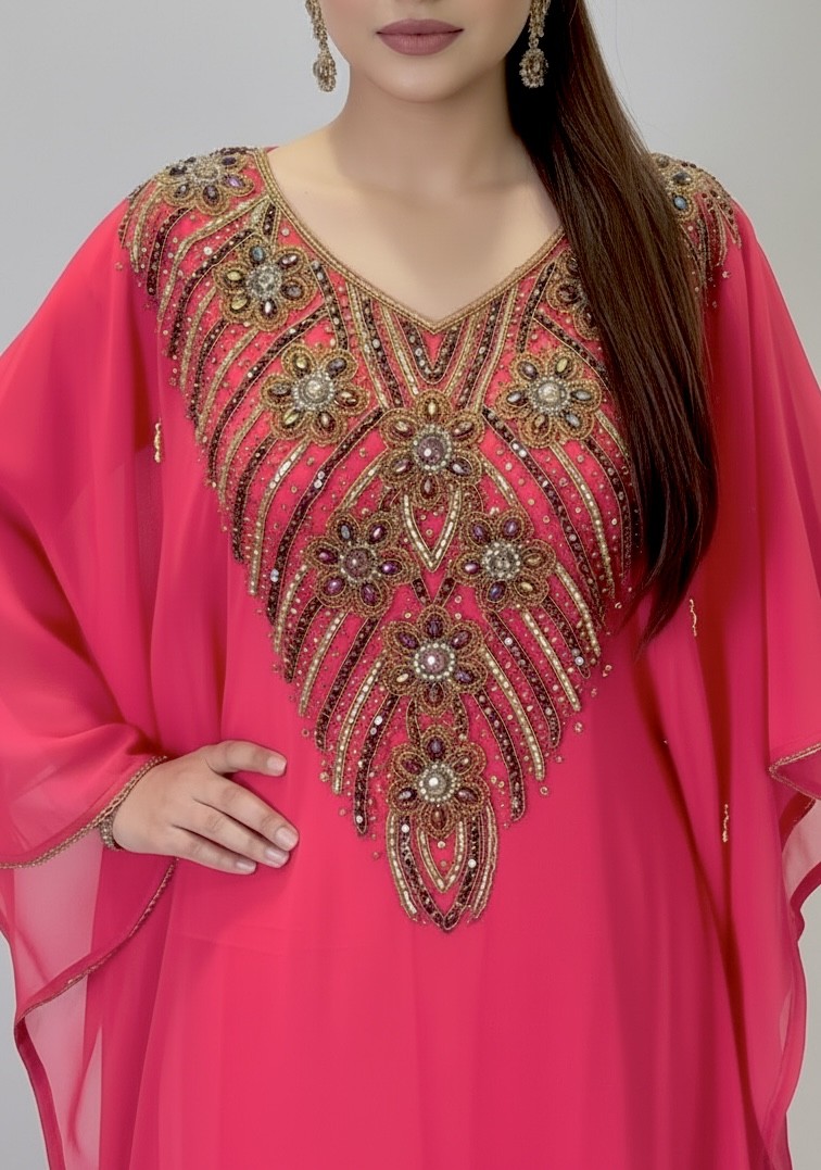 Broderies : Motifs floraux et arabesques perlées (buste)