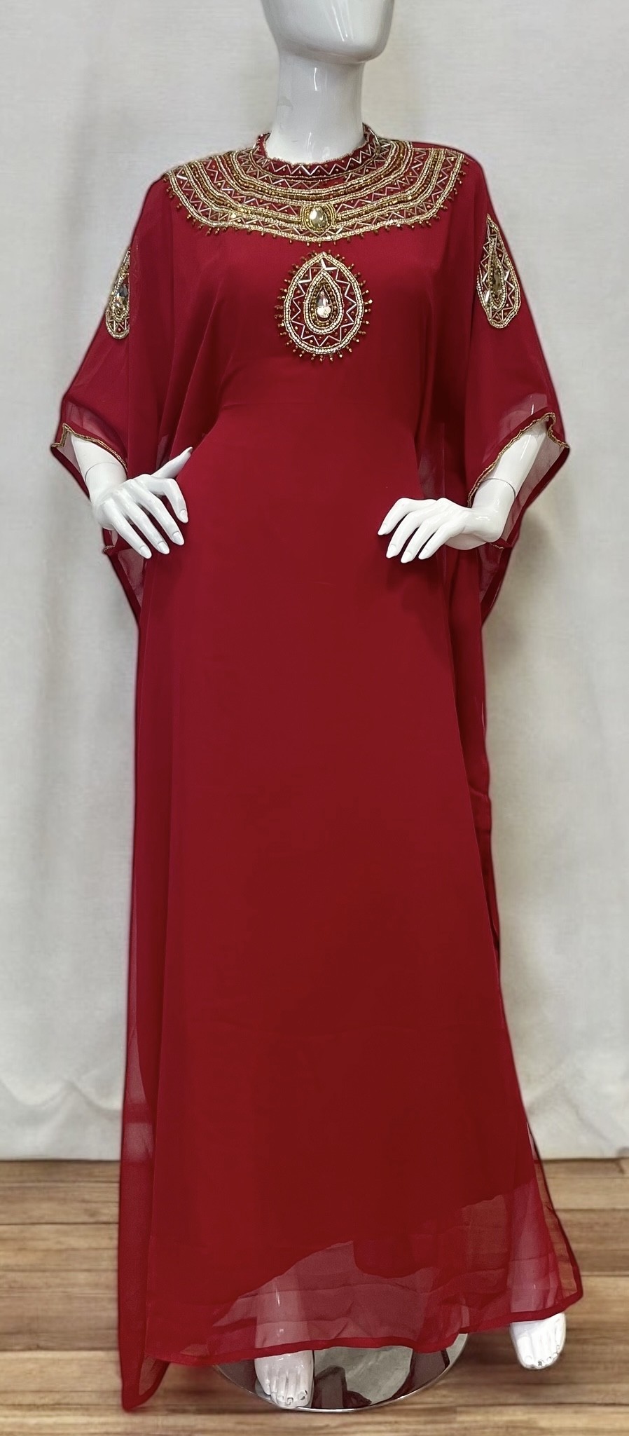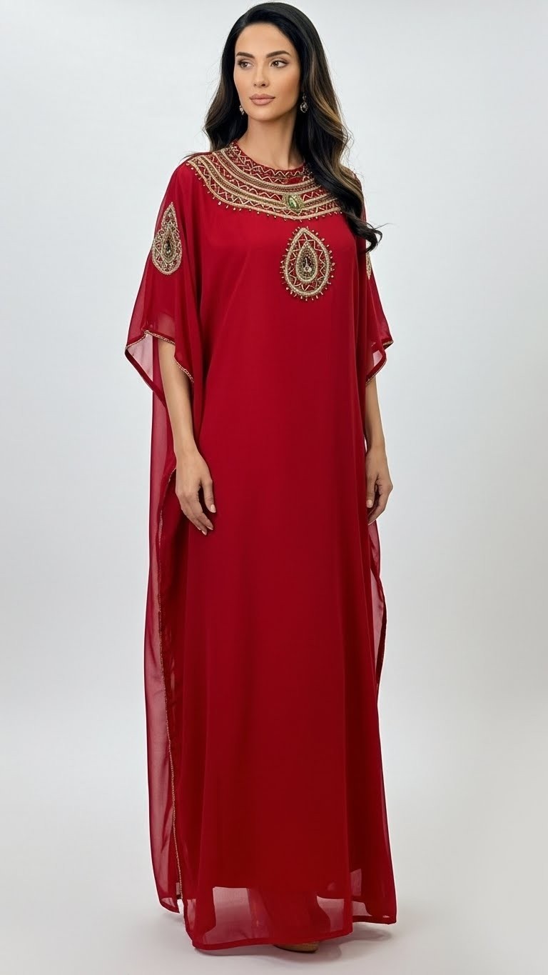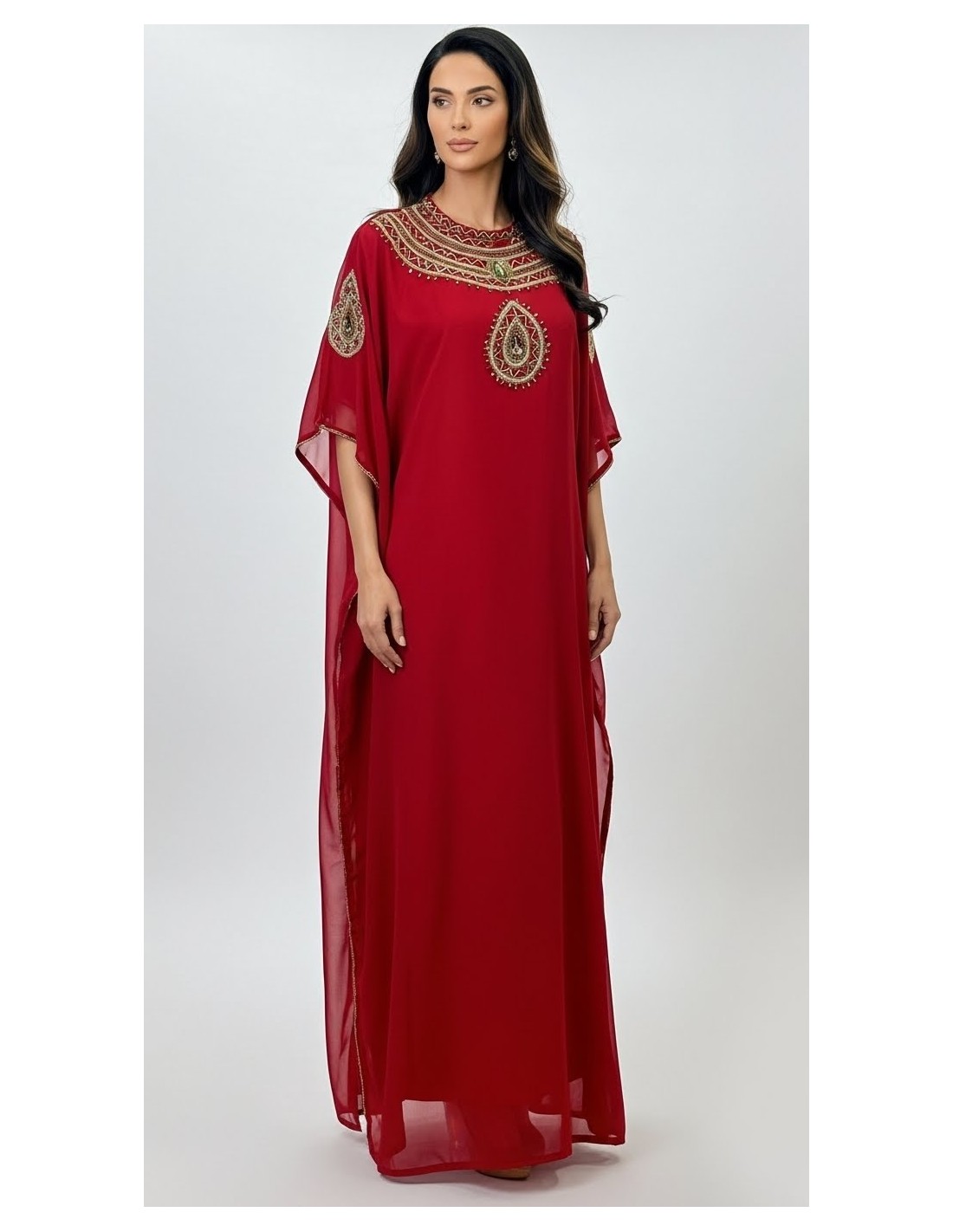 Sublimez vos événements avec cette robe de Dubai style farasha bordeaux au col montant raffiné, conçue pour allier tradition orientale et élégance moderne. Sa coupe fluide s’adapte parfaitement aux silhouettes grandes et élancées, tandis que son tissu léger offre un tombé impeccable.