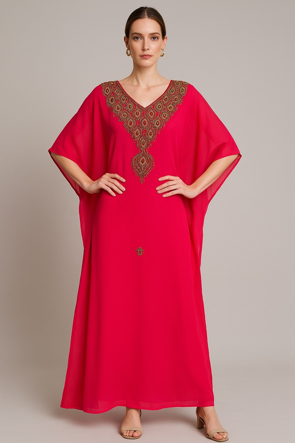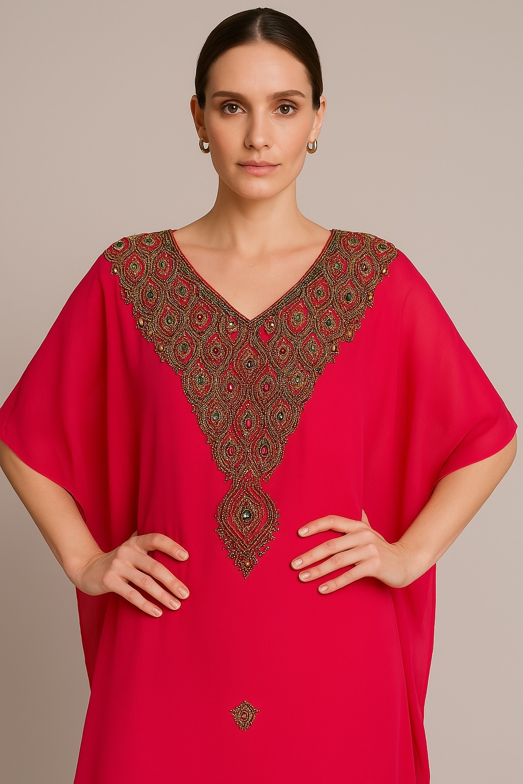 robe style Caftan enfant fille Rouge bordeaux doré