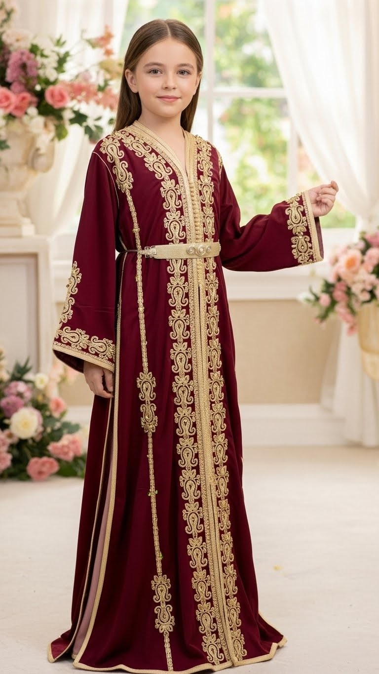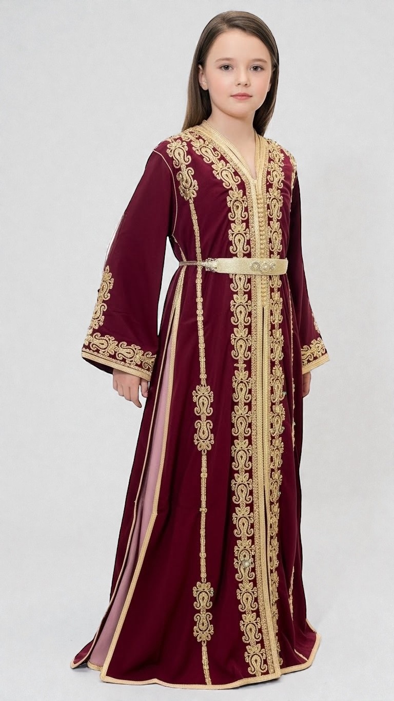 Disponible en différents modèles et coloris (bleu royal, bordeaux, rouge, etc.), elle convient aussi bien aux enfantsqu’aux adolescentes, offrant un style oriental sophistiqué tout en restant adapté à leur âge.