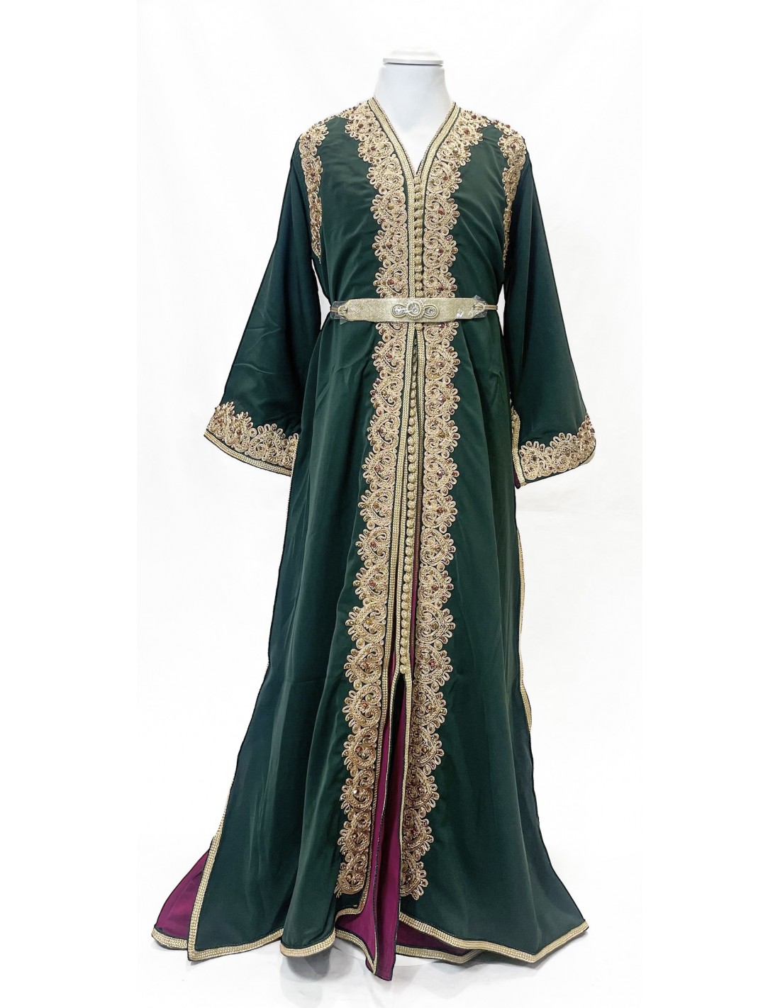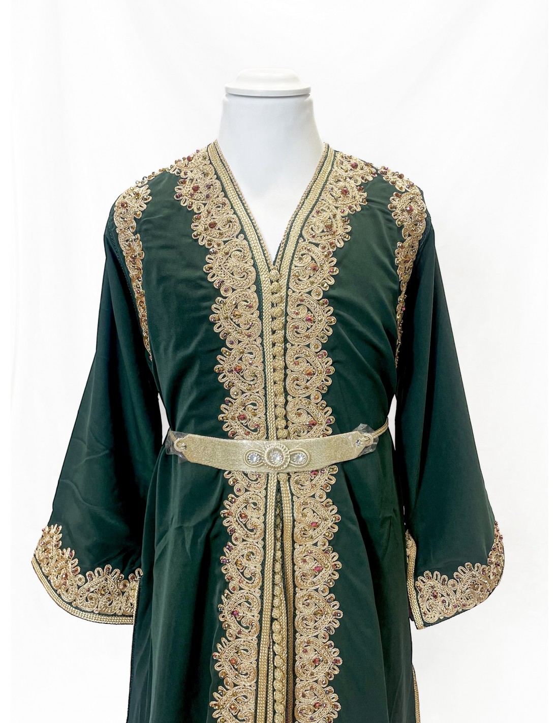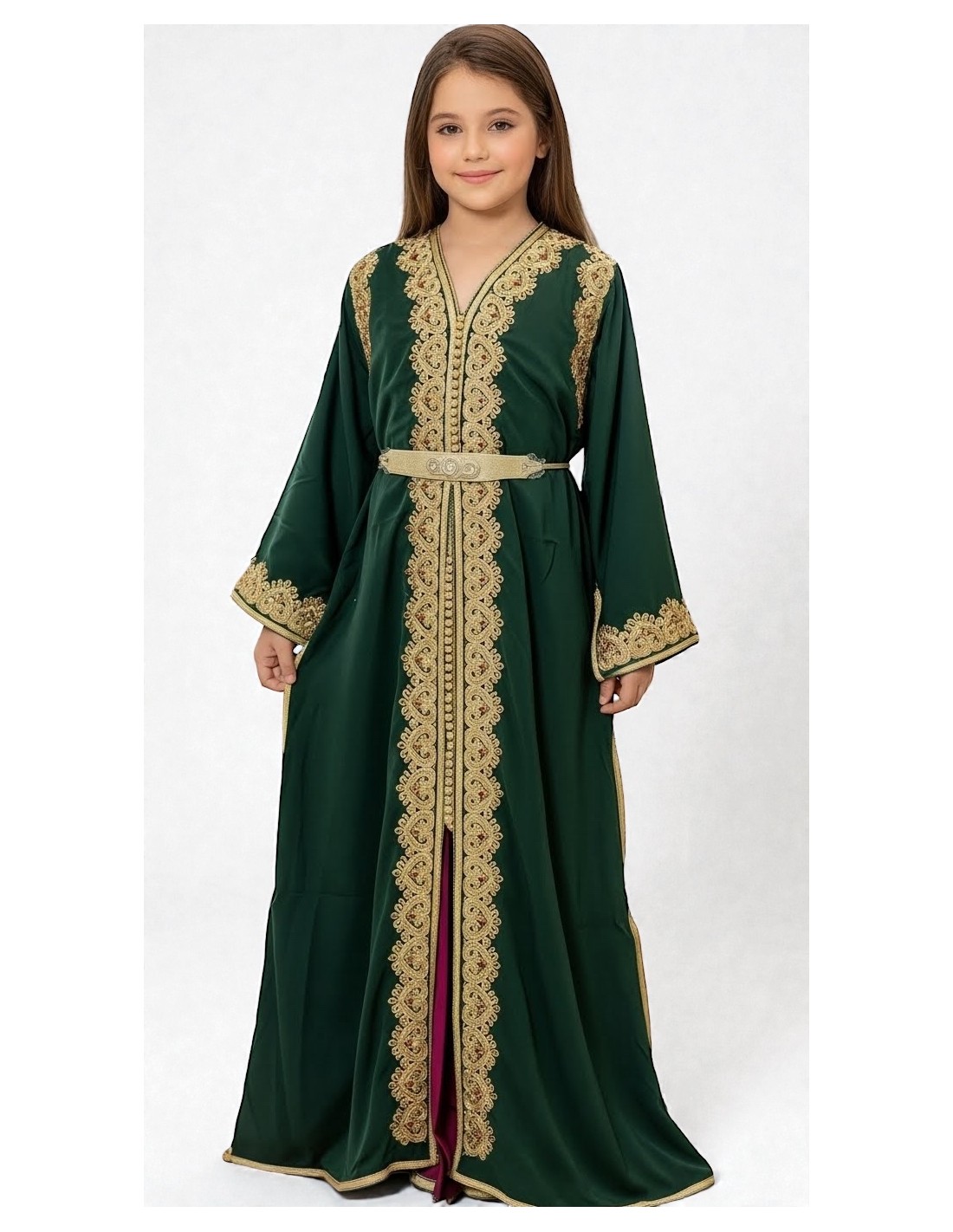 Takchita Enfant & Ado 2 Pièces vert royal– Caftan Oriental Fille 8 à 15 Ans avec Ceinture  - 1