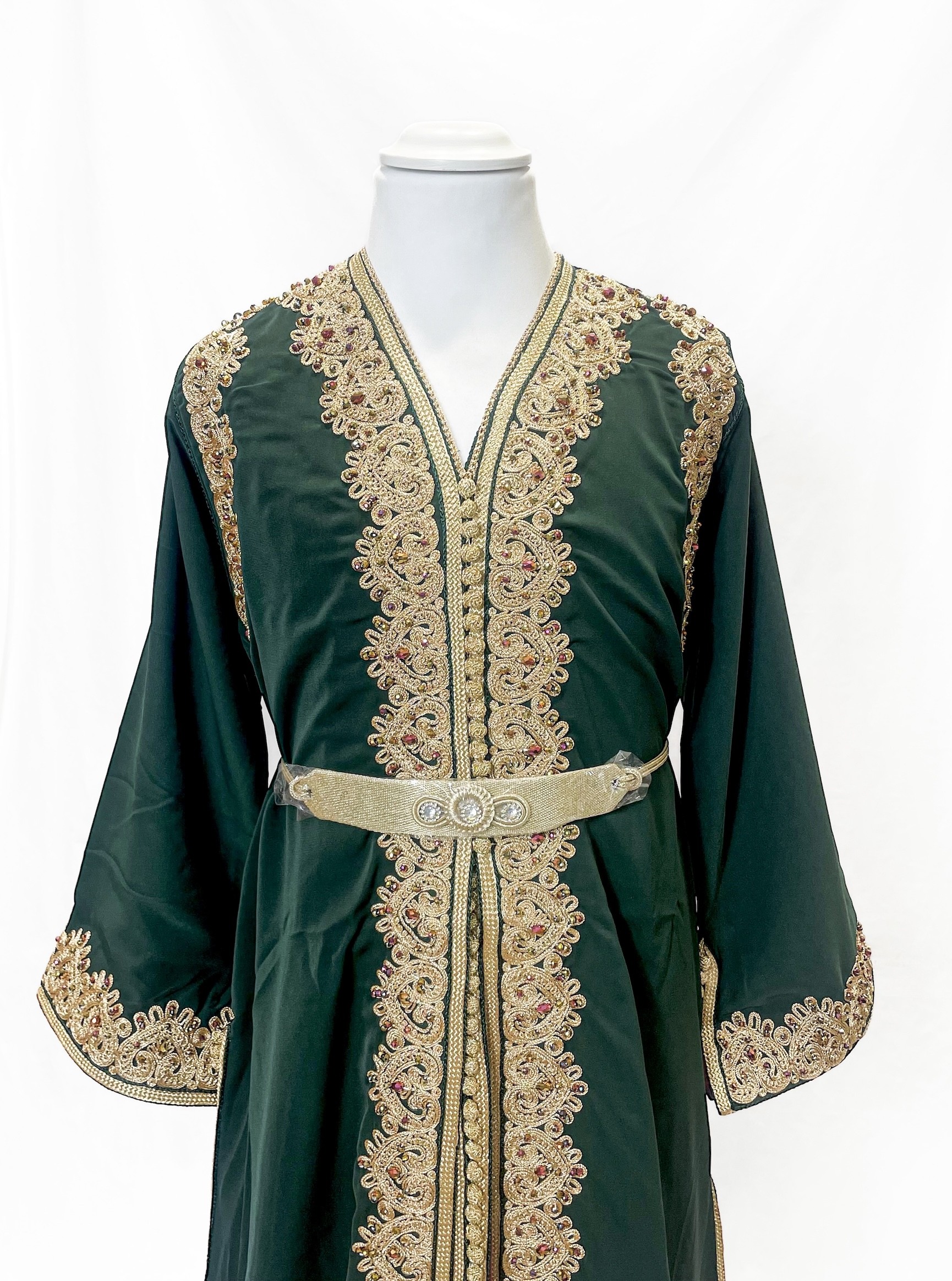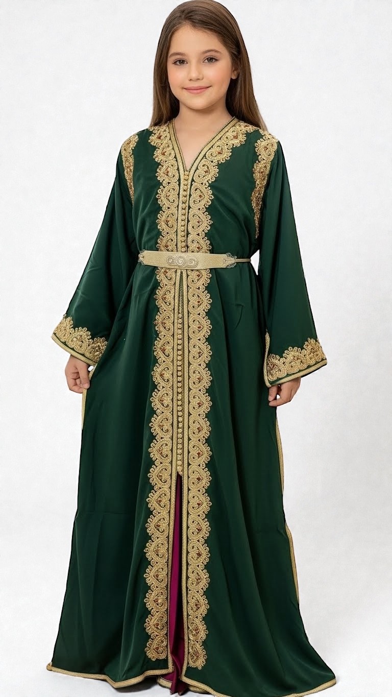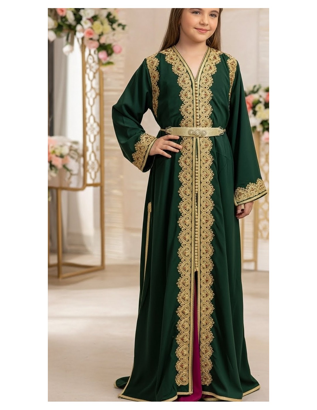 Takchita Enfant & Ado 2 Pièces vert royal– Caftan Oriental Fille 8 à 15 Ans avec Ceinture