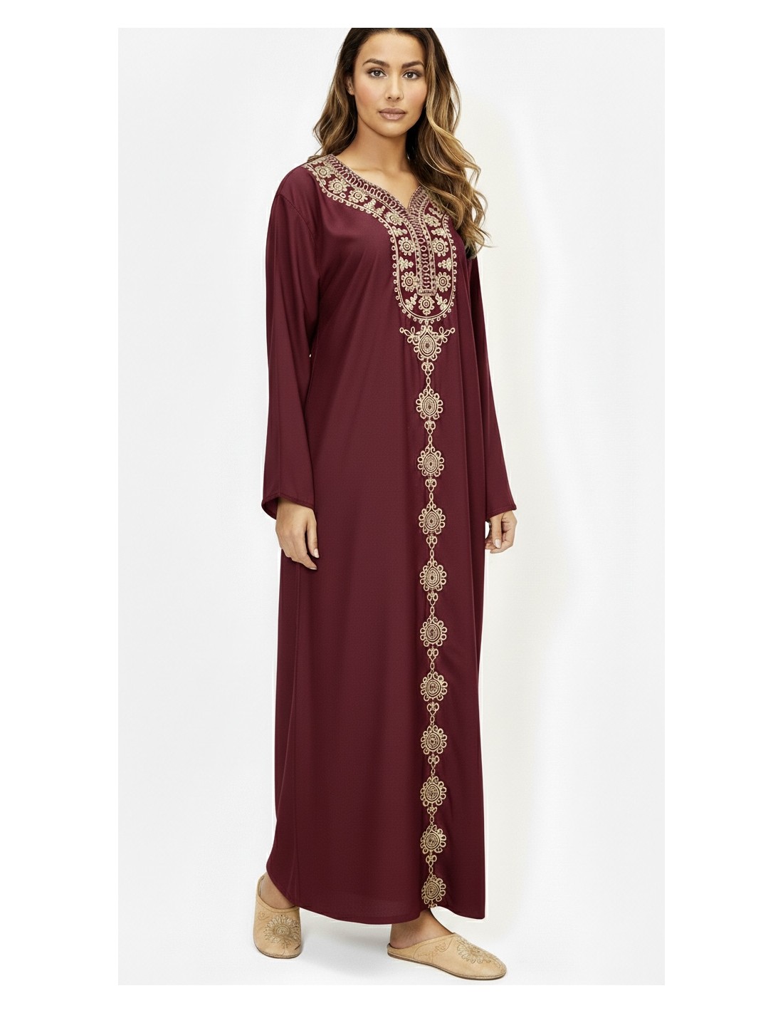 Robe de maison orientale bordeaux brodée – Confort et élégance pour le Ramadan  - 1