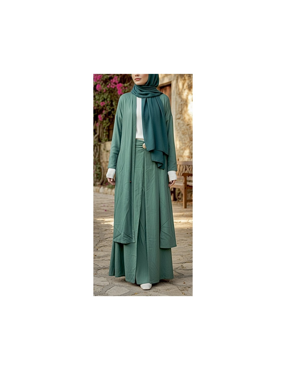 Ensemble jupe longue et gilet long vert – Tenue mastour élégante et fluide  - 1