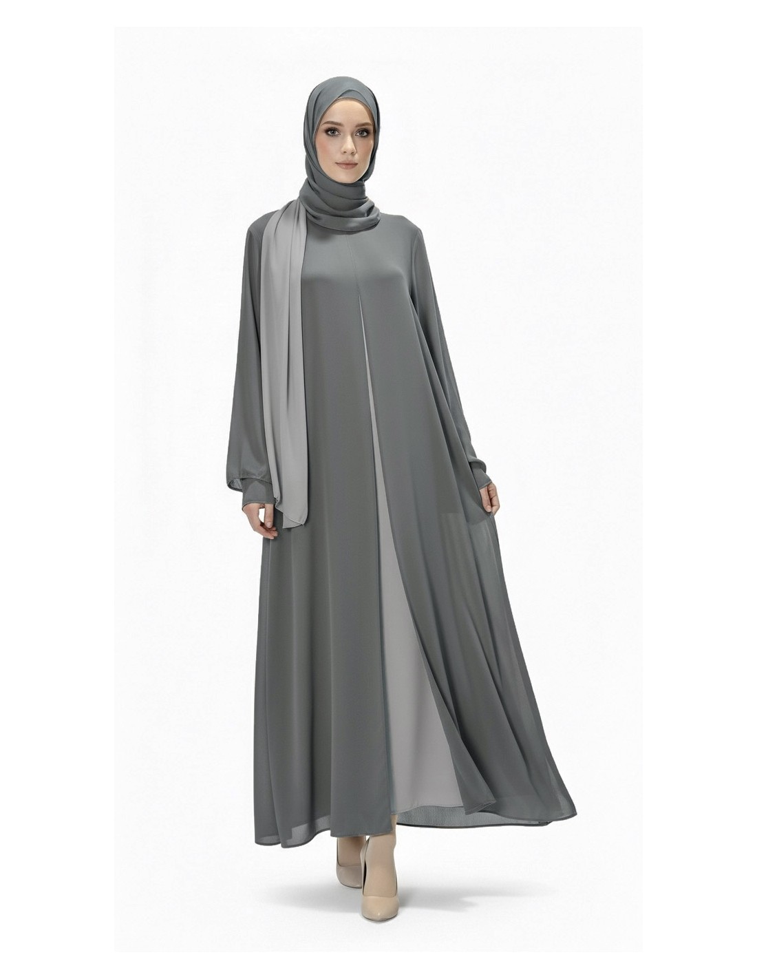 Robe Longue Bicolore avec Voile Assorti GRIS – Spécial Ramadan, Aïd, Hajj & Omra  - 1