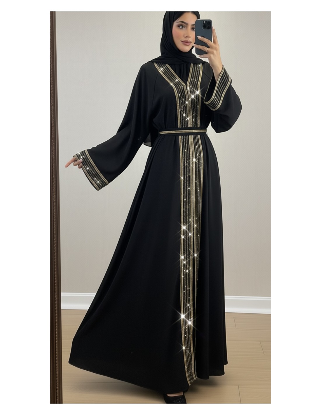 Abaya abaya Dubai noire or – Robe émirats élégante et moderne