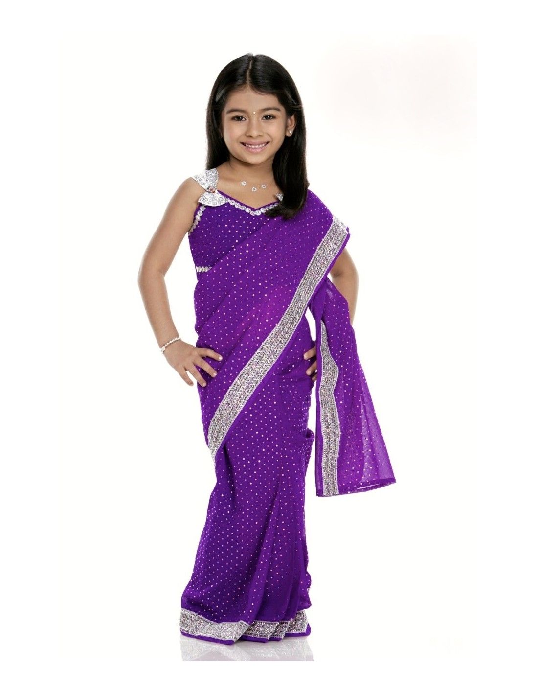 Sari pour enfant prêt à porter avec choli dejà cousu. Facile à porter.