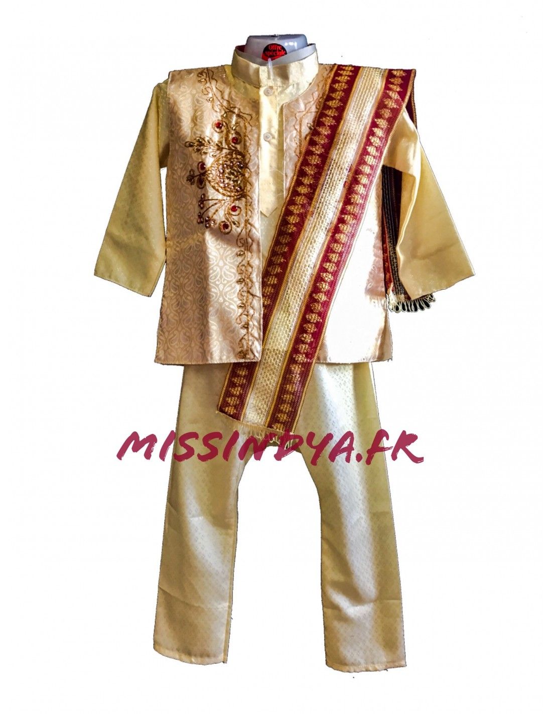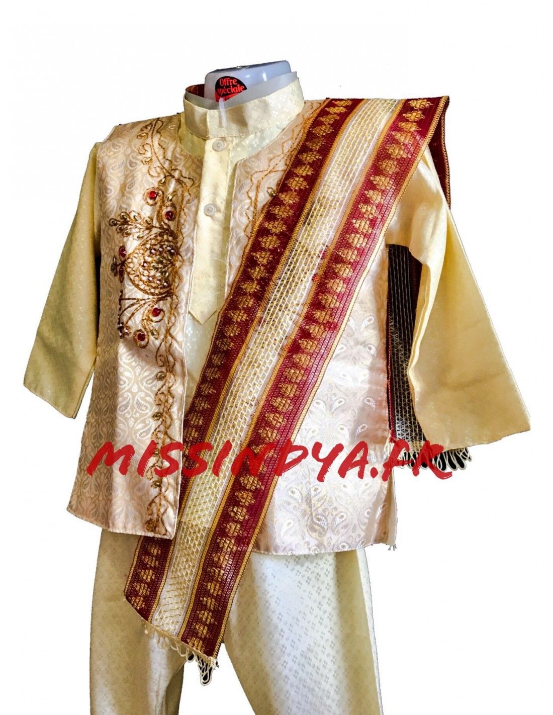 Kurta garçon enfant de couleur beige et rouge