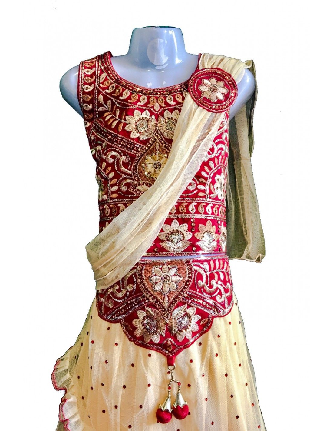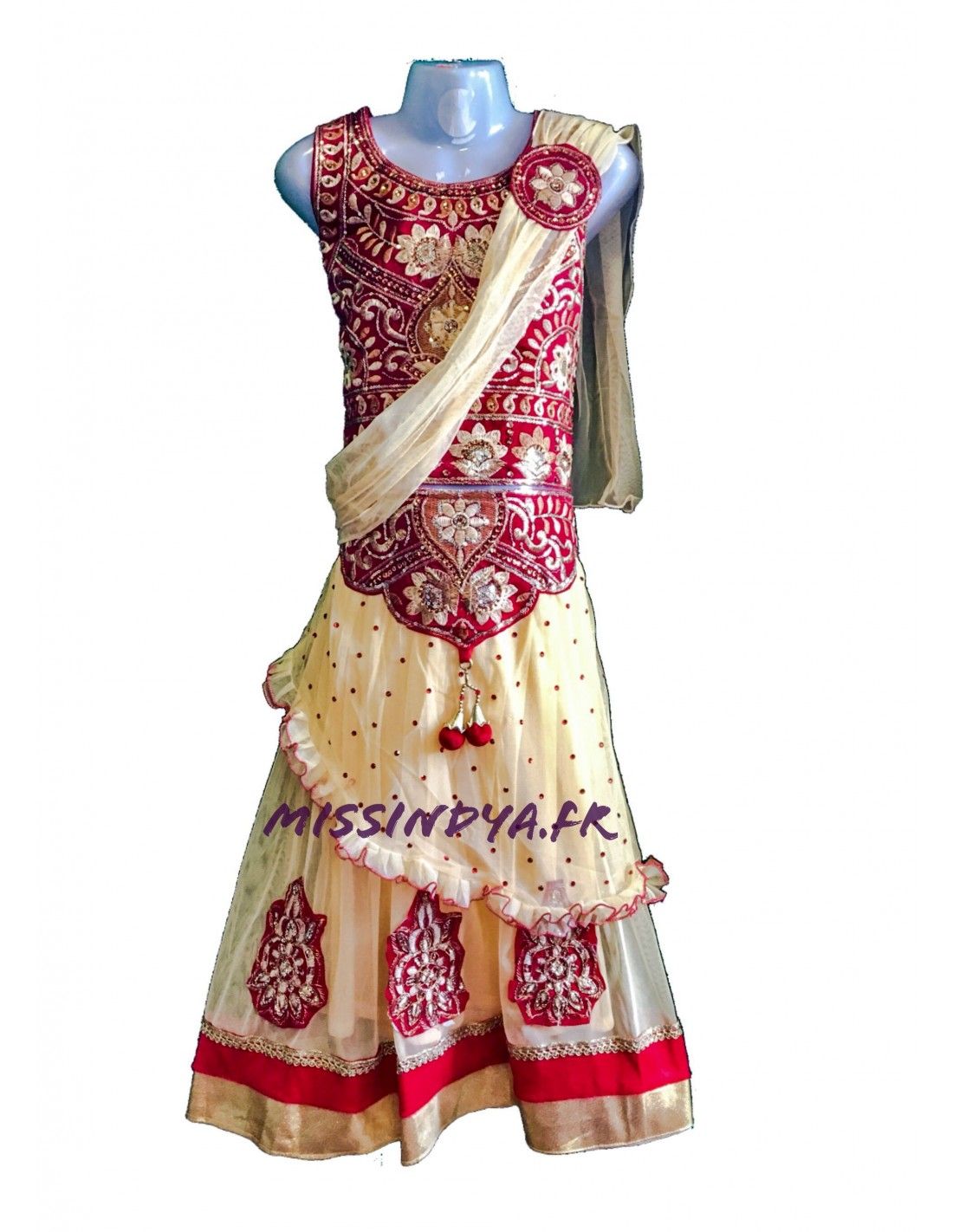 Lehenga choli indien, rouge et beige