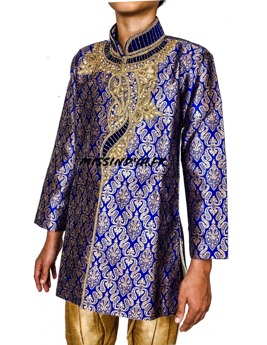 Sherwani garçon haut gamme 2 pièces comprenant pantalon et tunique doublé.