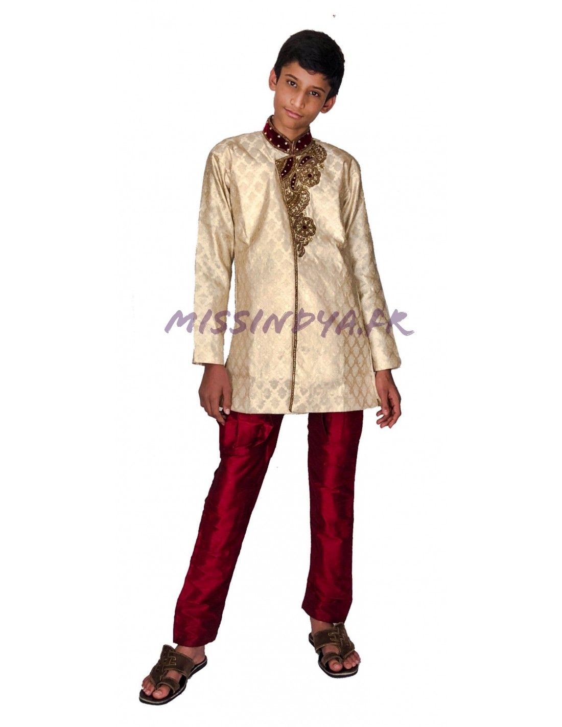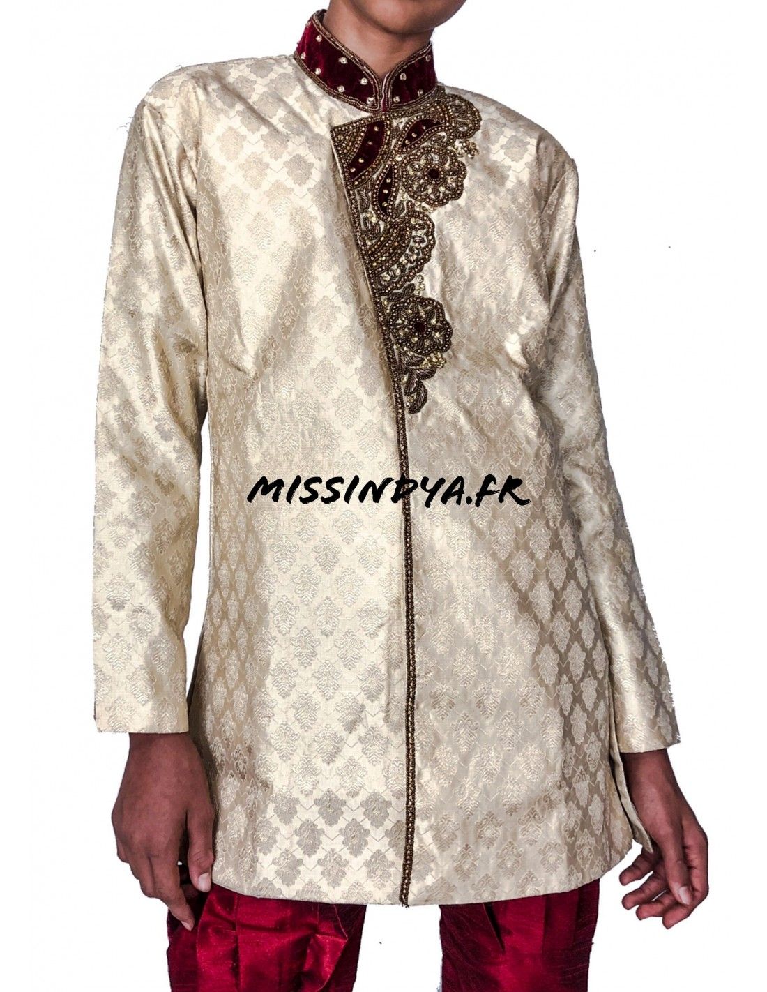 Sherwani garçon haut gamme 2 pièces comprenant pantalon et tunique doublé.