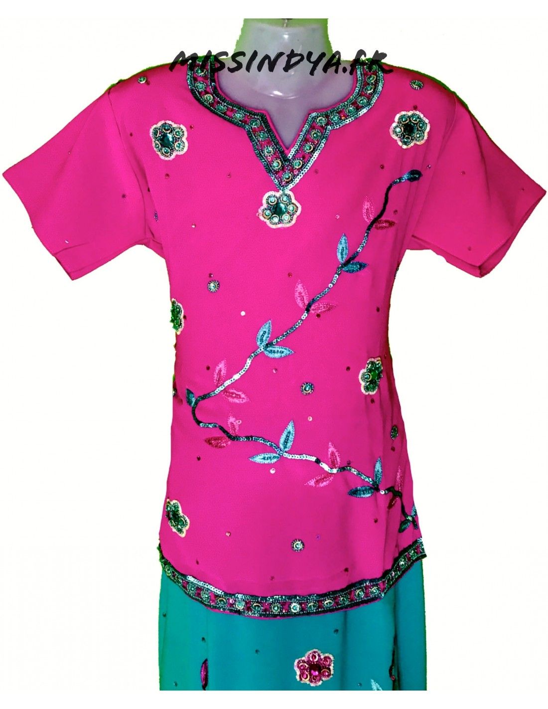 Lehenga sari indien Fille rose et bleu vert  - 2