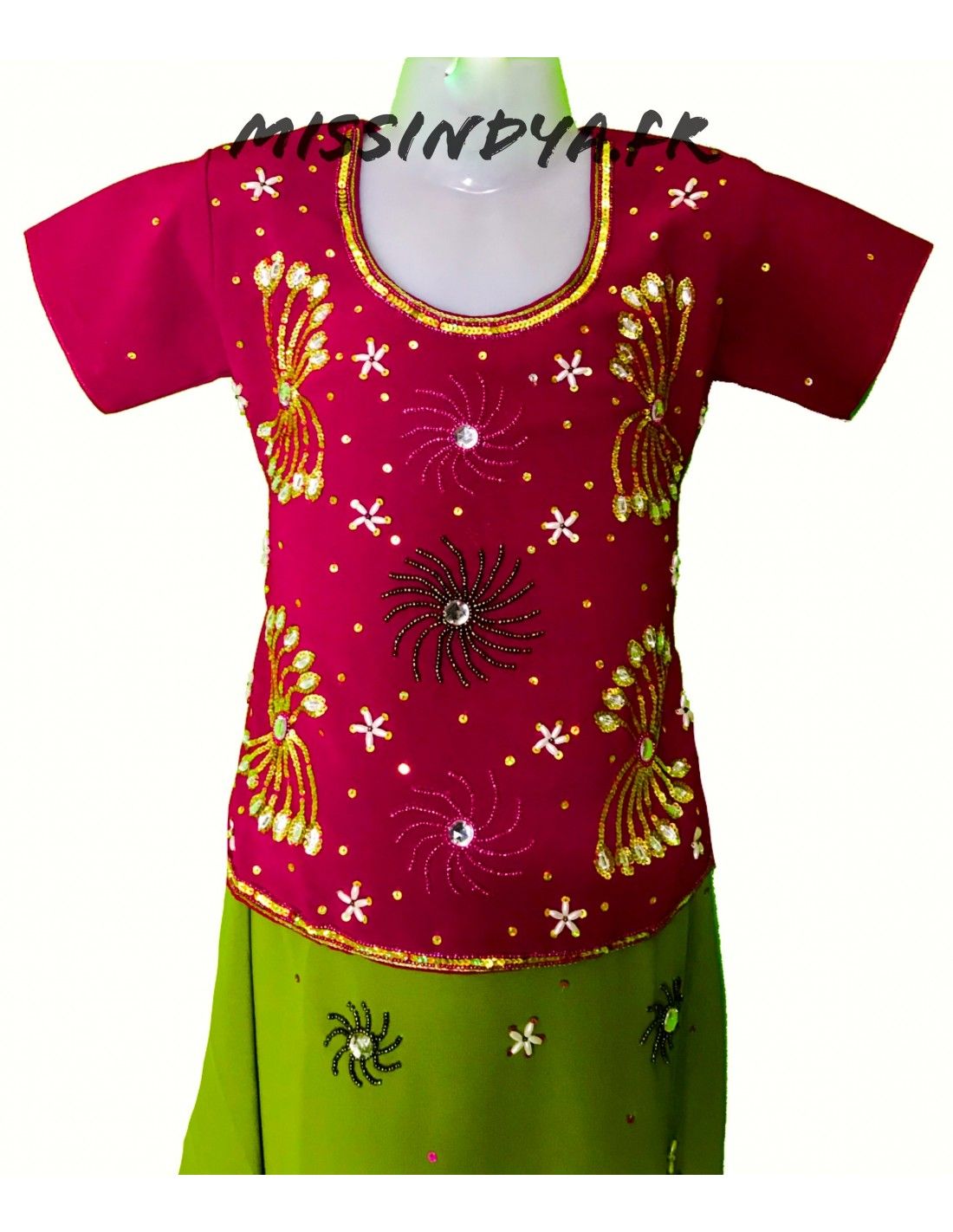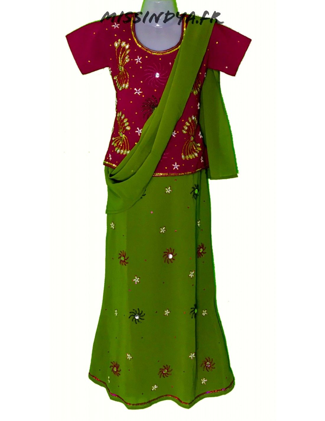 Lehenga choli 3 pièces comprenant, choli et jupe avec le drapé cousu sur la jupe