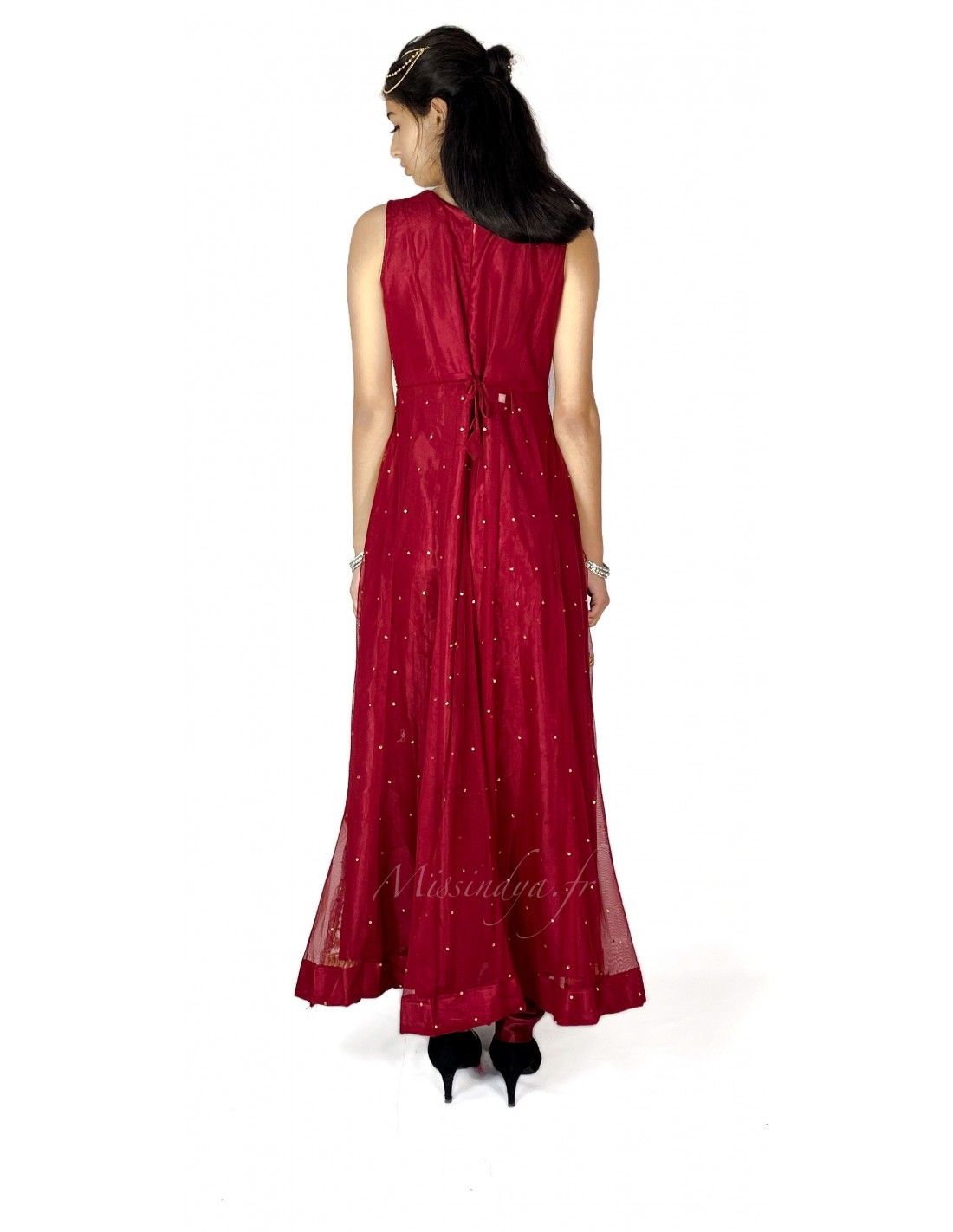 Tenue indienne fille Preeti saree rouge bollywood  - 2