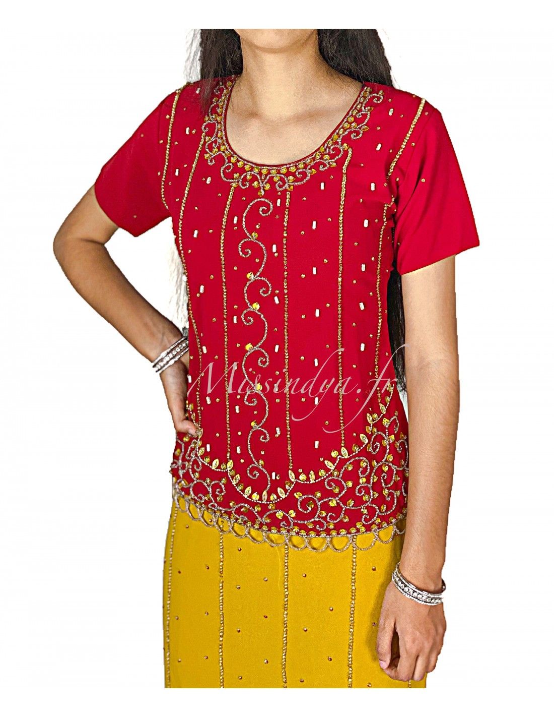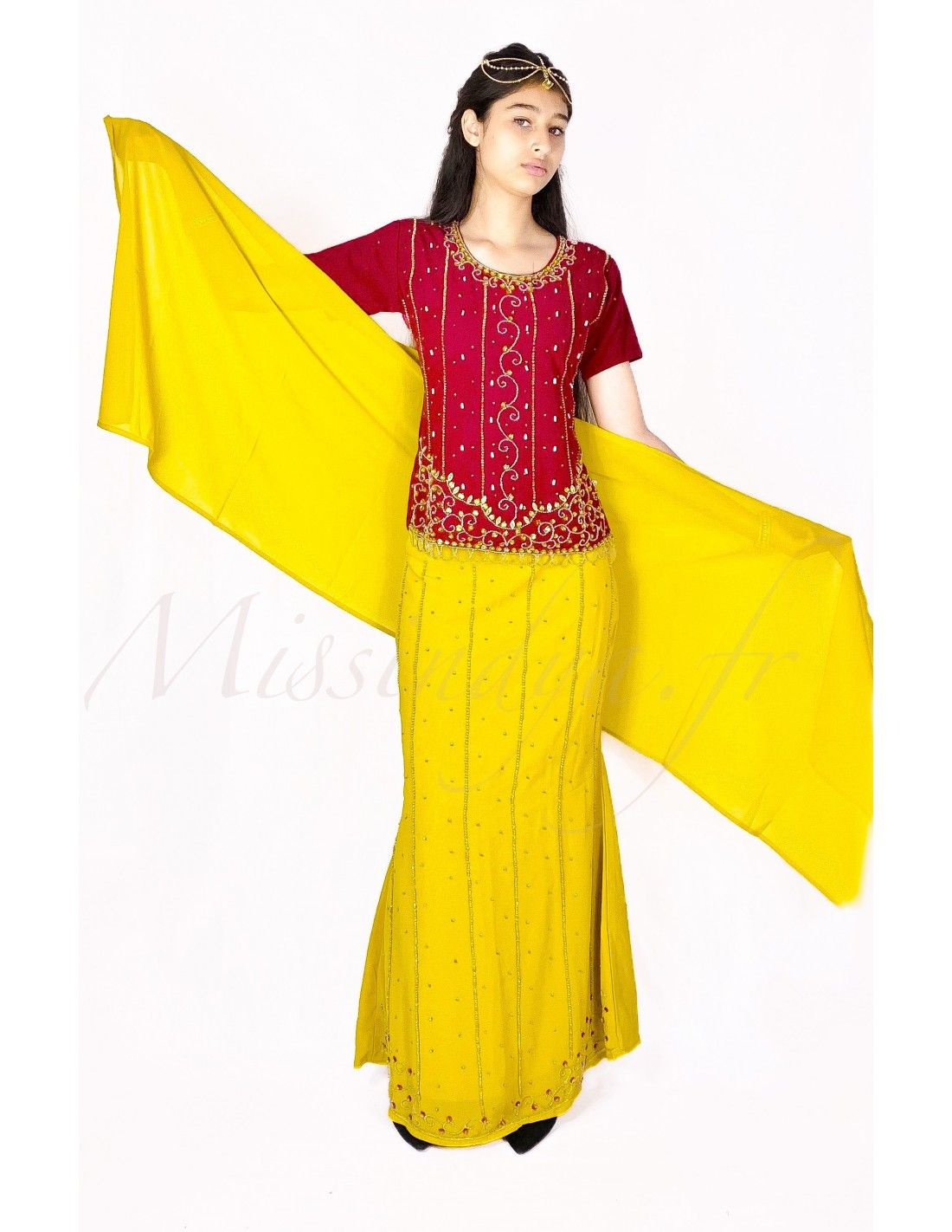 Lehenga sari indien bollywood jaune rouge