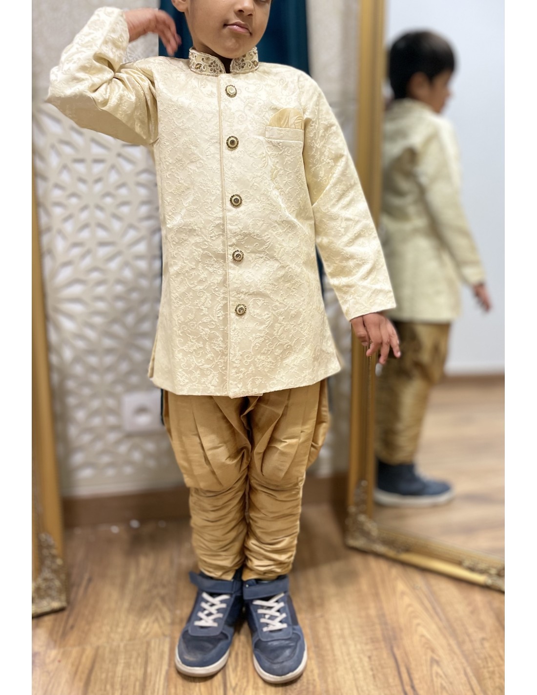 Sherwani garçon haut gamme 2 pièces comprenant pantalon et tunique doublé.
