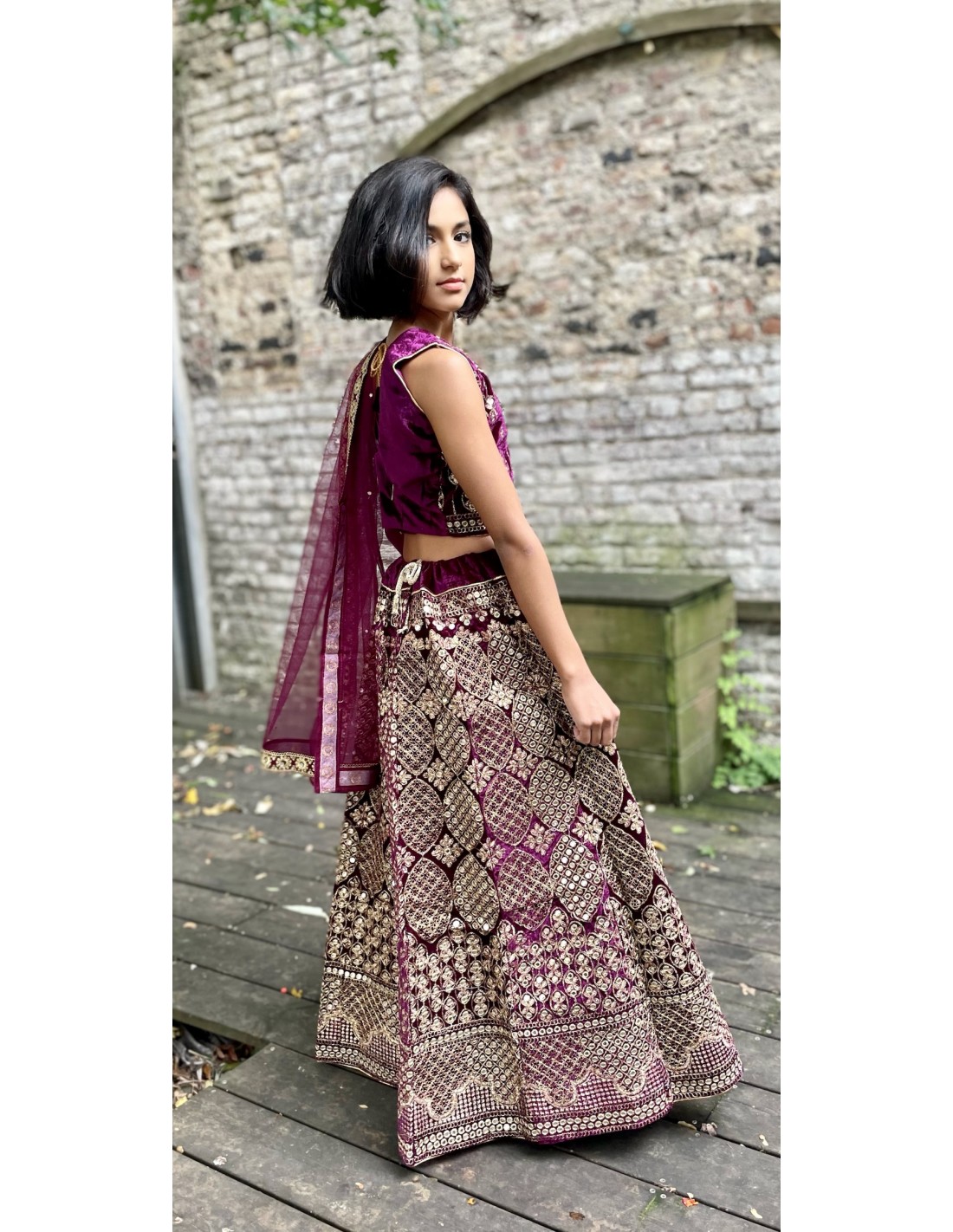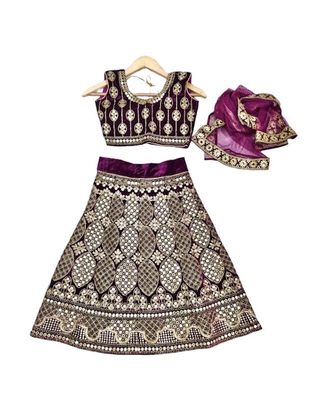 ensemble jupe enfant lehenga choli violet prune  - 1