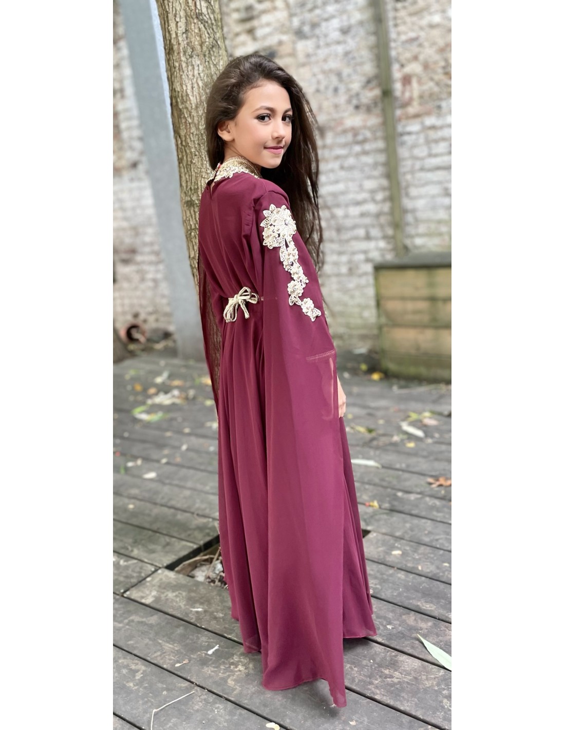 caftan enfant col monté, modèle manches voilage cape