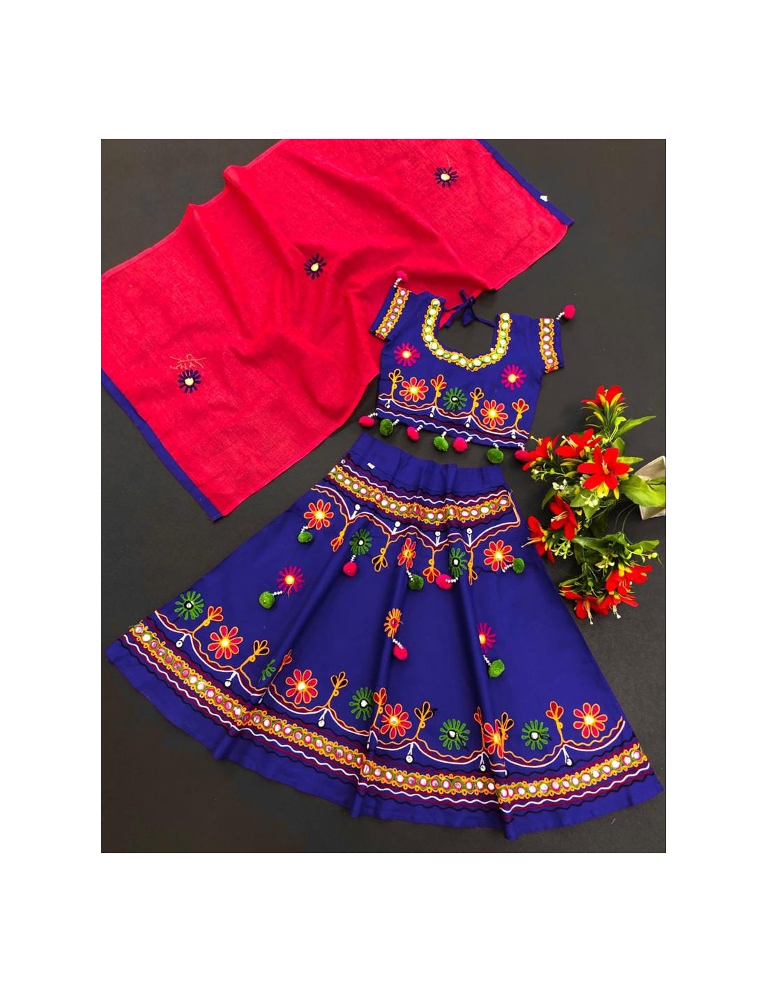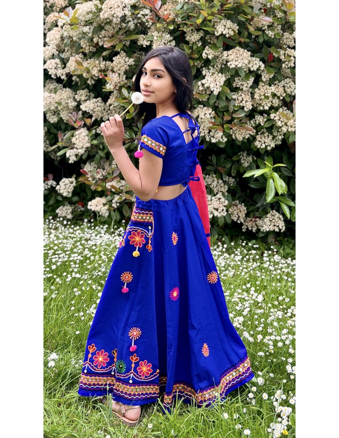 Lehenga sari pour petite fille richement brodé au fil sur la jupe et le choli ( haut ) .