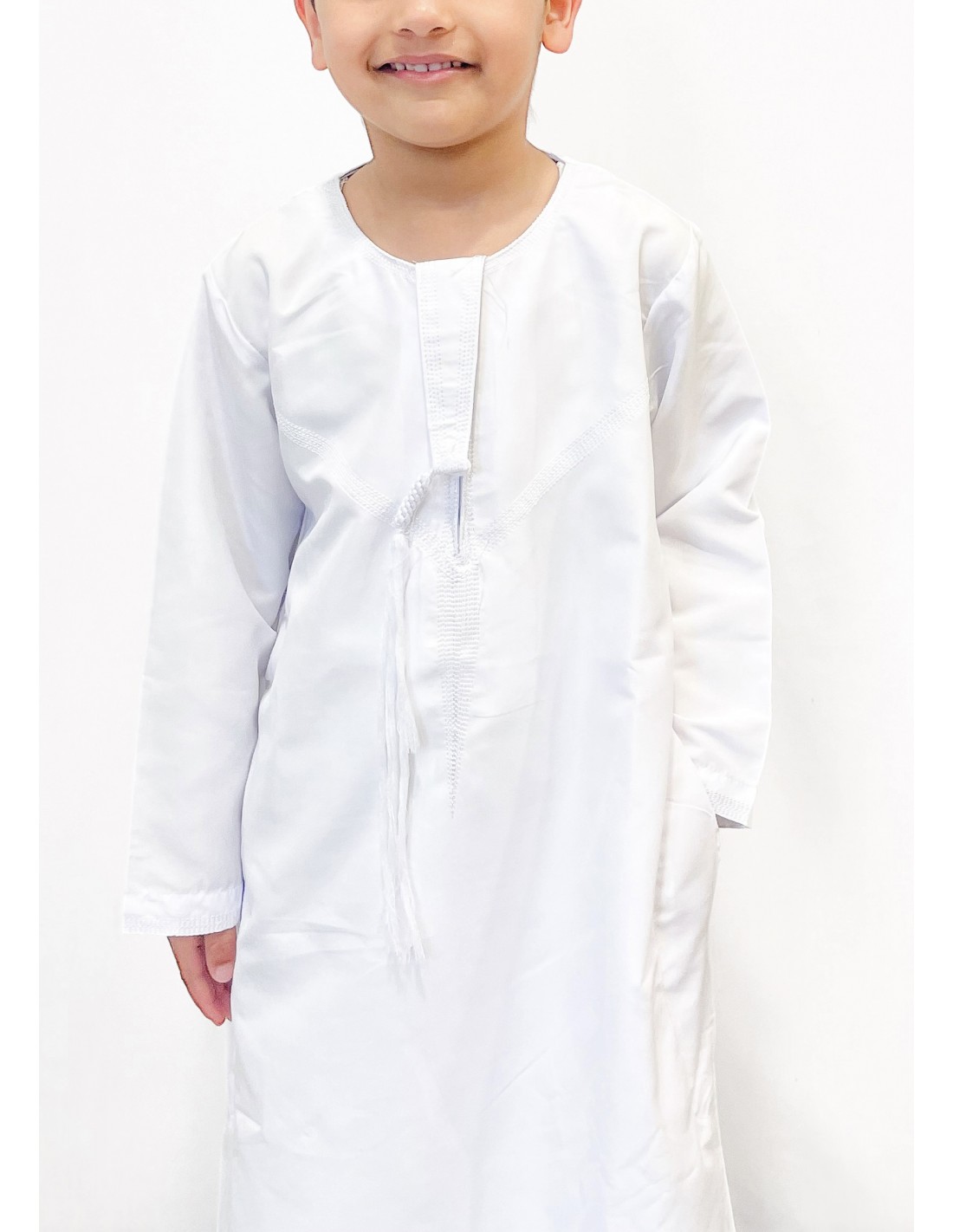 Qamis enfant garçon djellaba Kurta émirati blanc  - 3