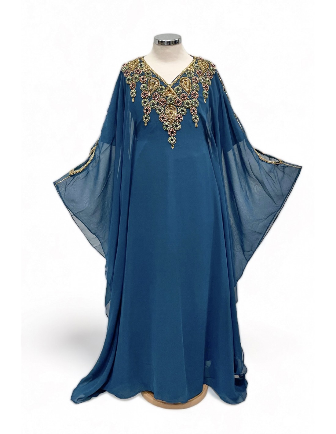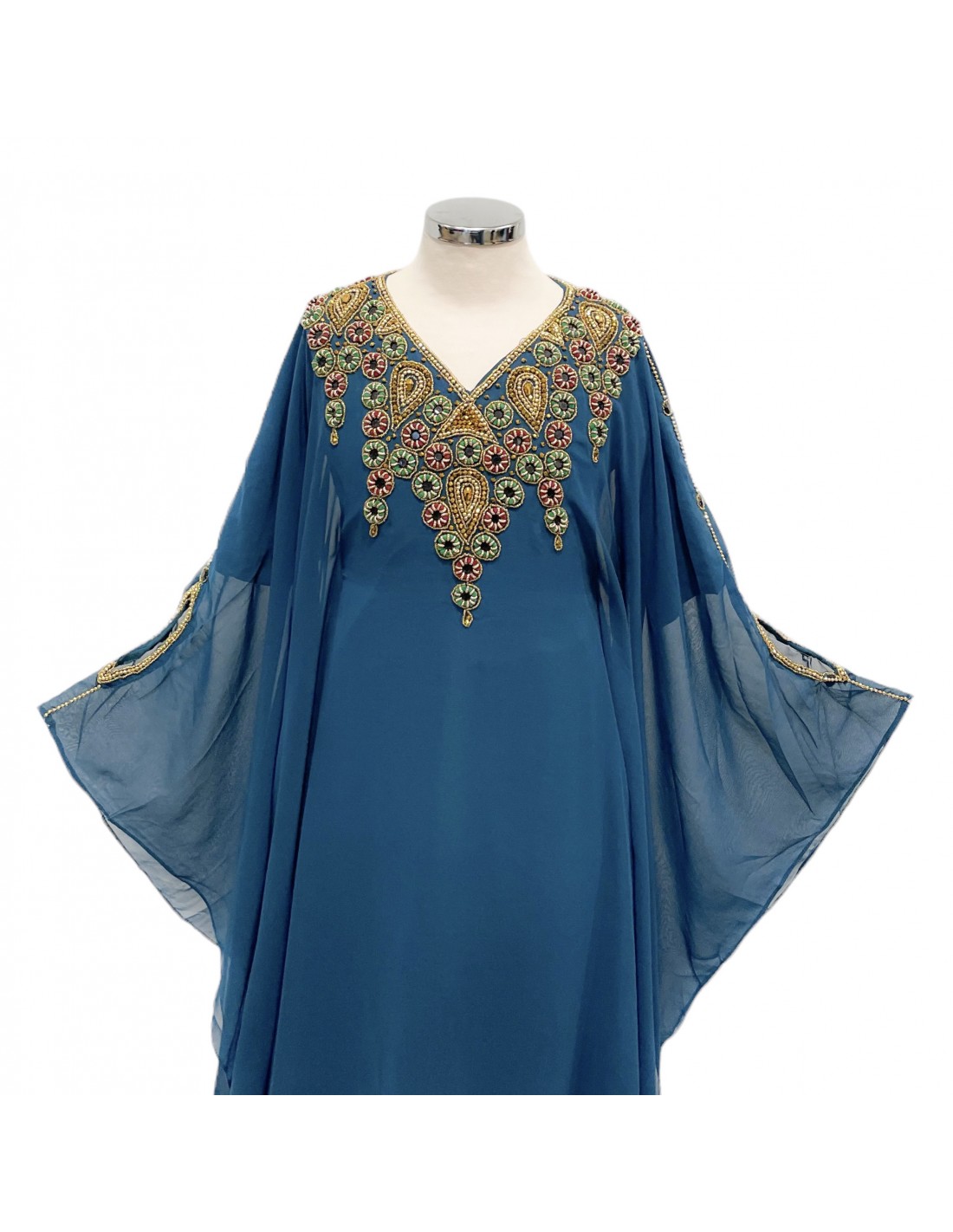 Robe Dubai enfant fille farasha papillon Bleu  - 1