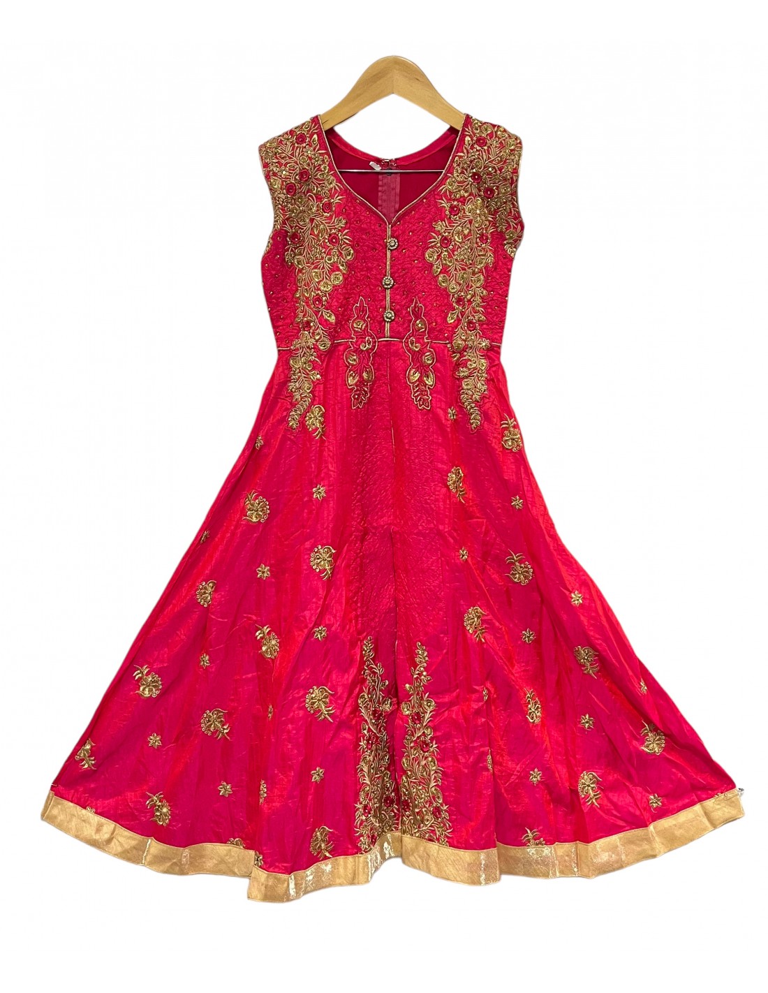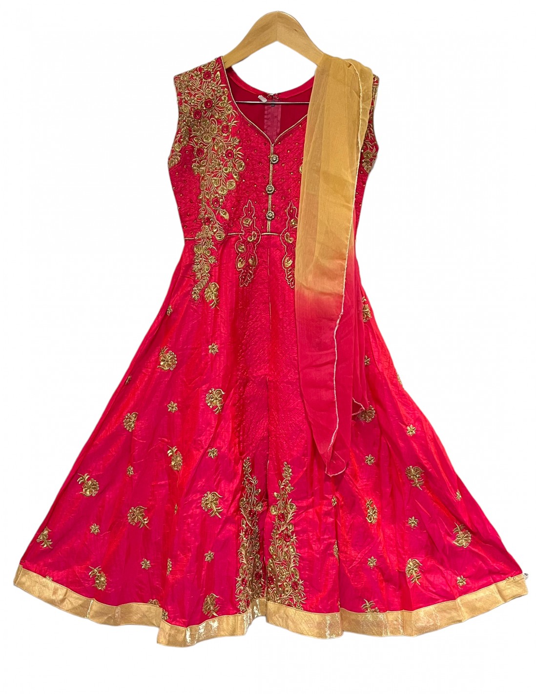 Robe indienne SILK enfant fille pas cher Rouge rose Deepa  - 1