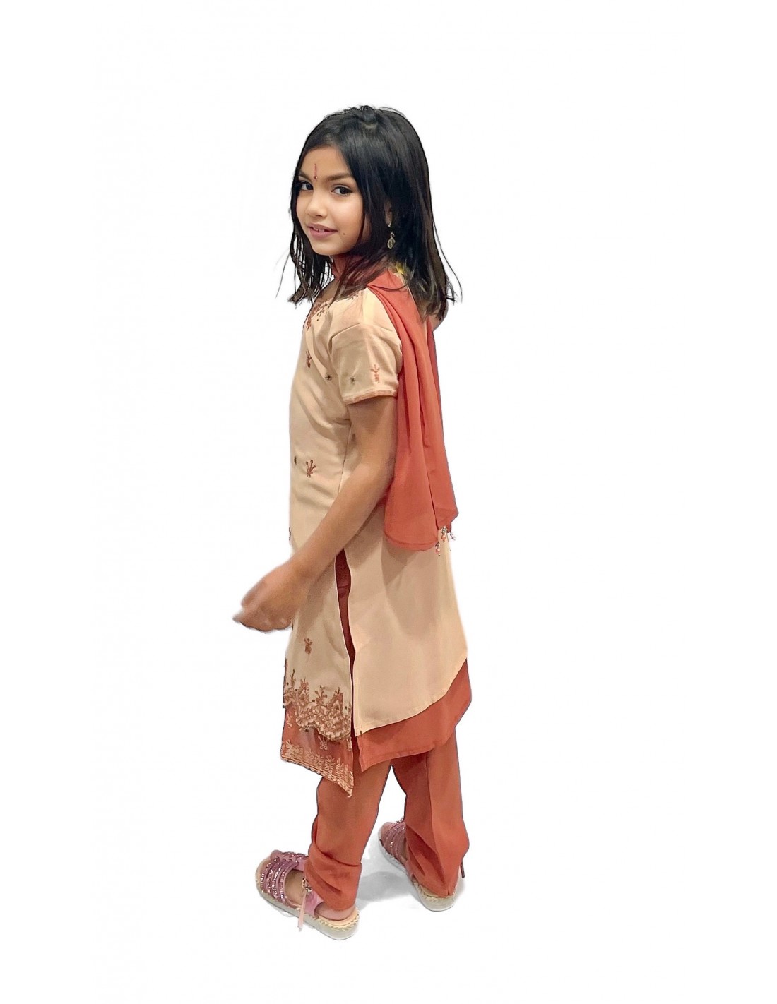 ensemble indienne enfant fille pas cher beige et marron  - 4