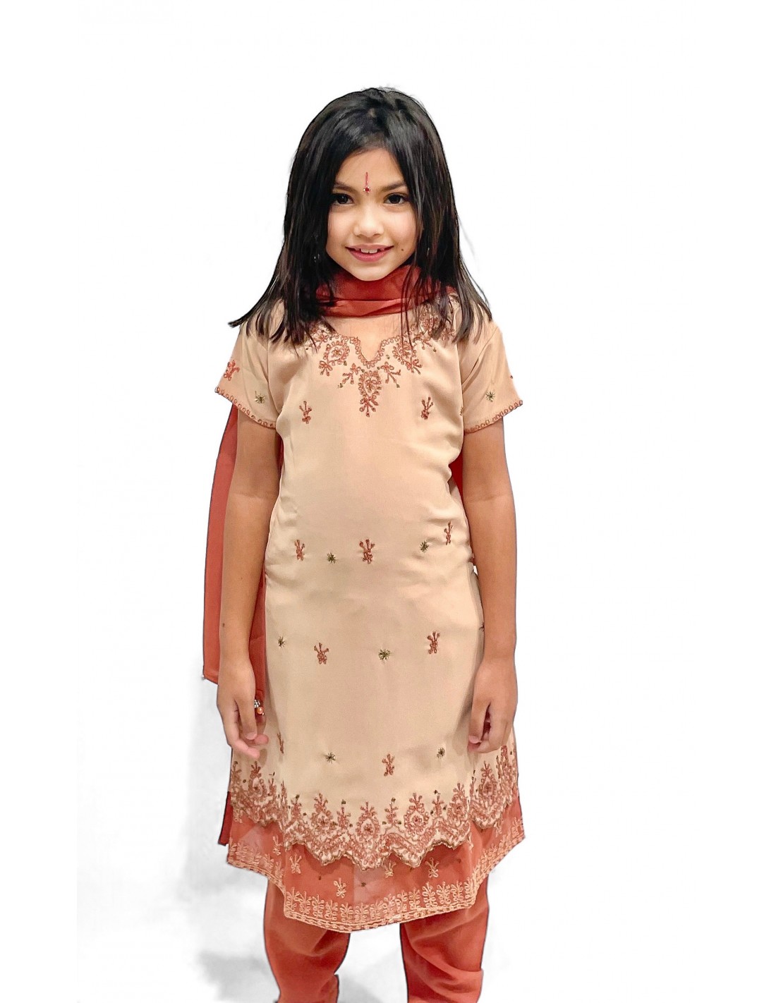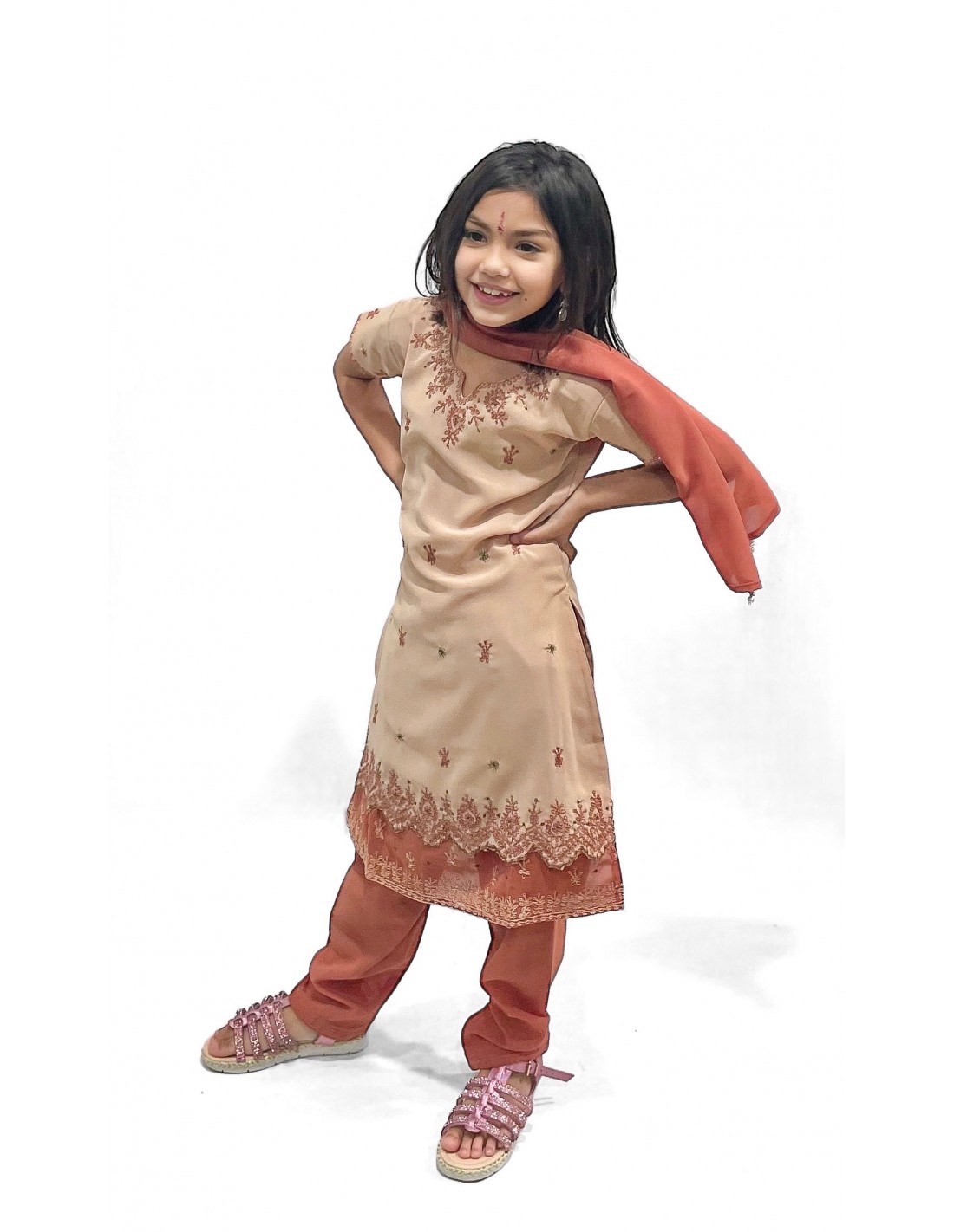 ensemble indienne enfant fille pas cher beige et marron  - 1